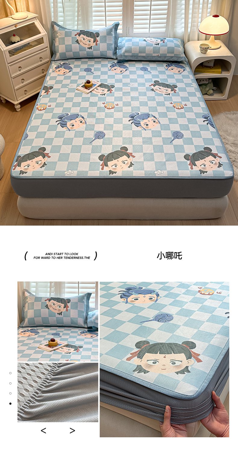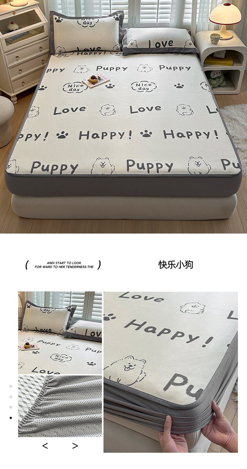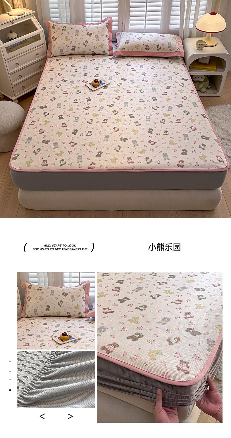 (总)花言狐语 2025新款真冰藤印花床笠款凉席