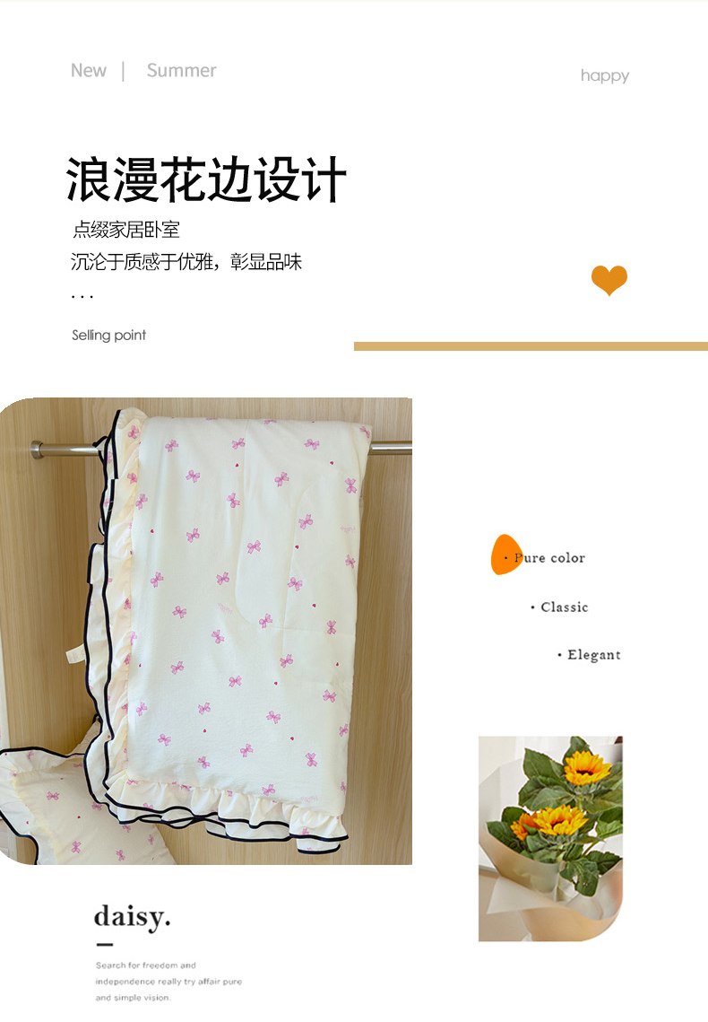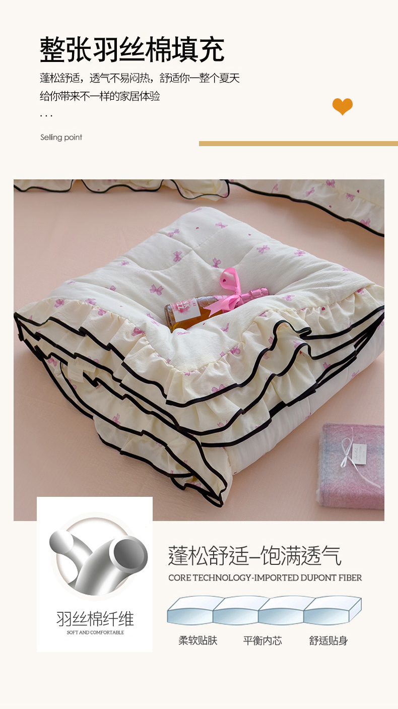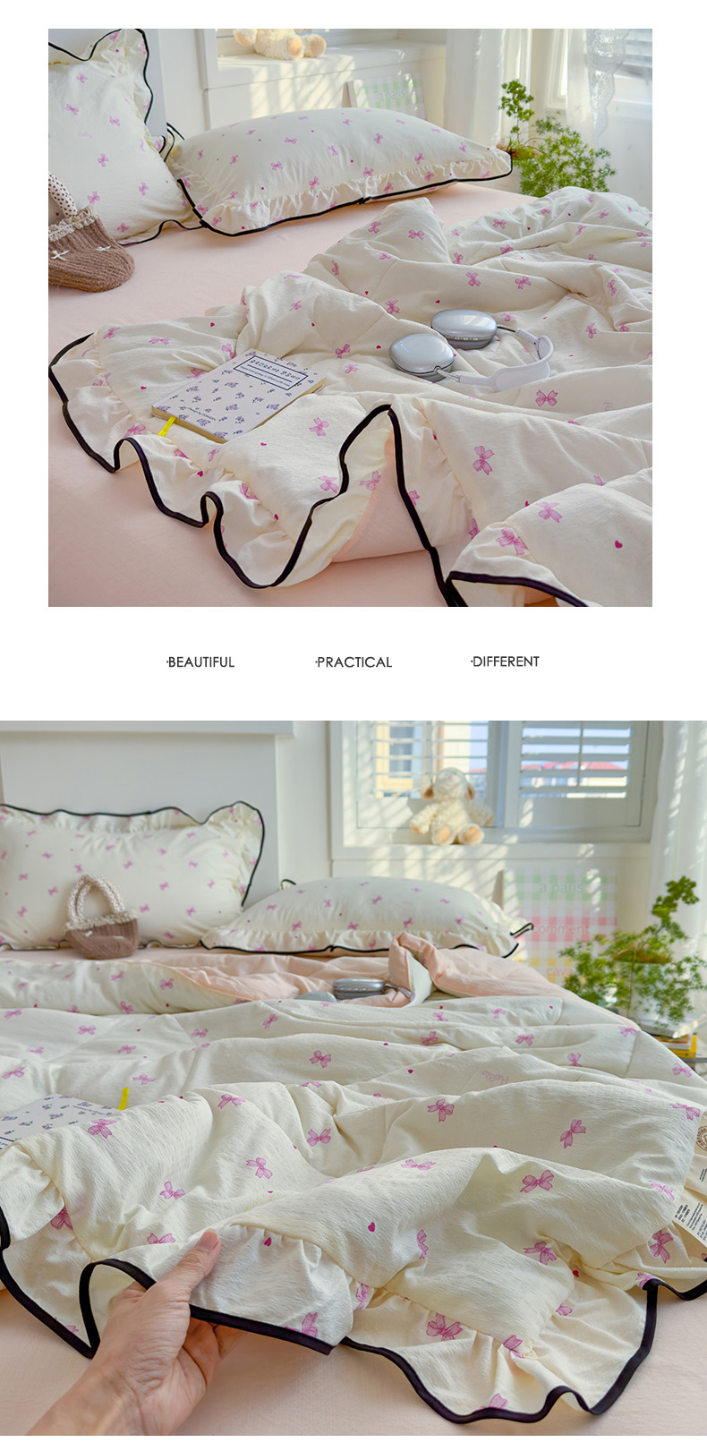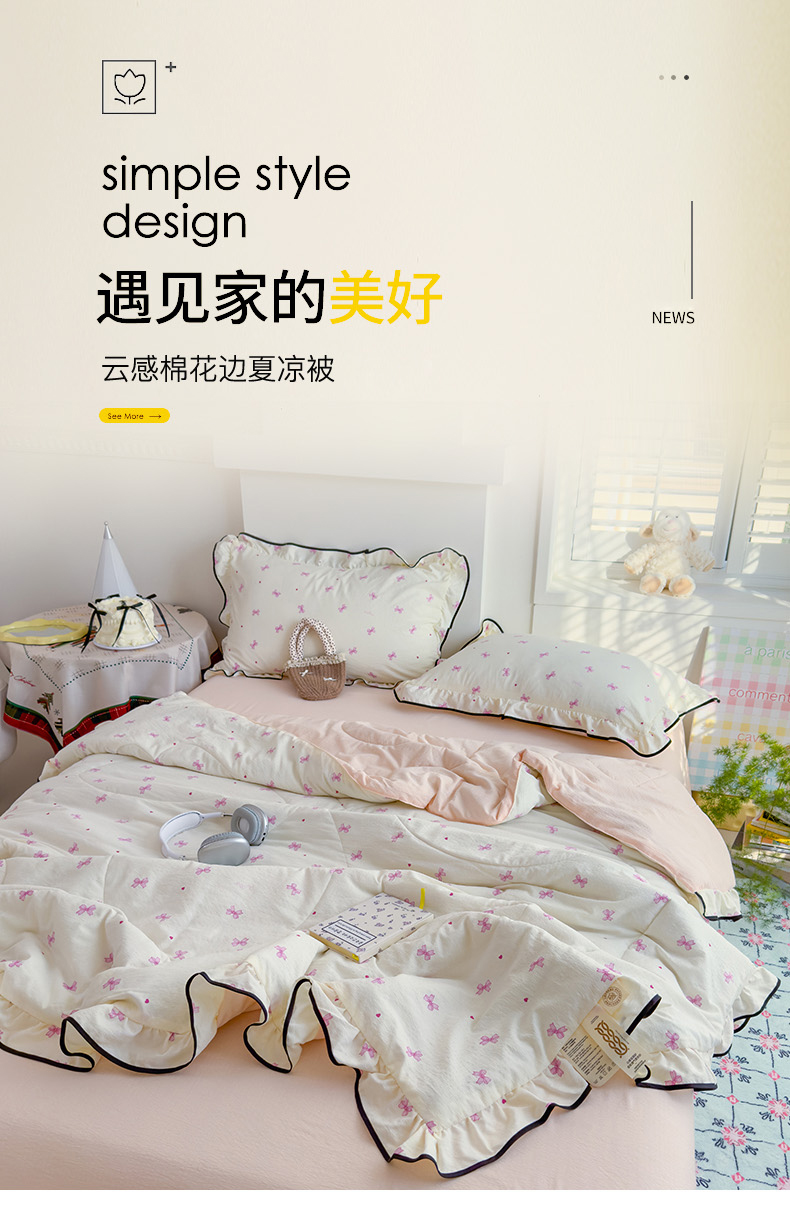 商品名称:慕尚 2025新款云感棉花边夏凉被空调被 粉蝴蝶结