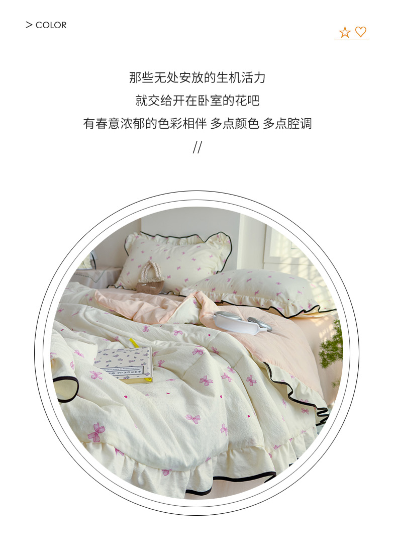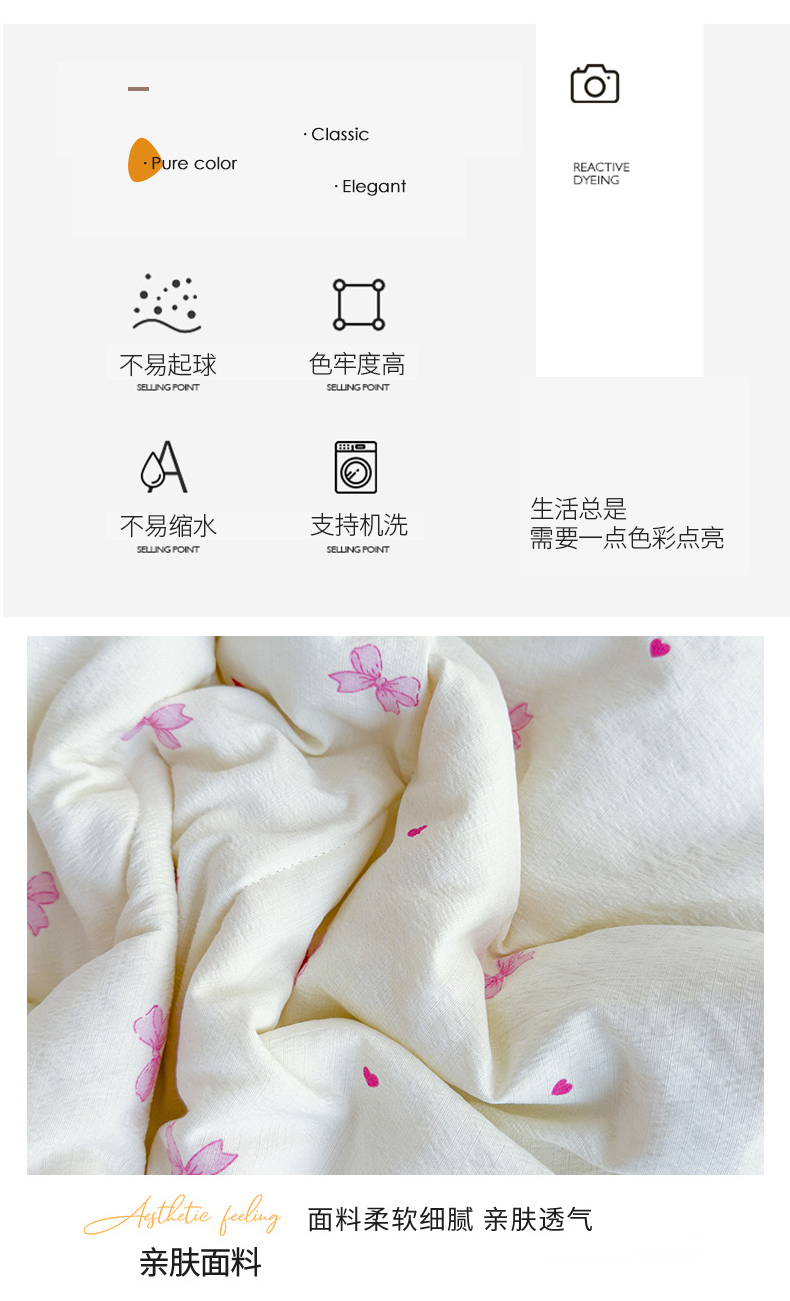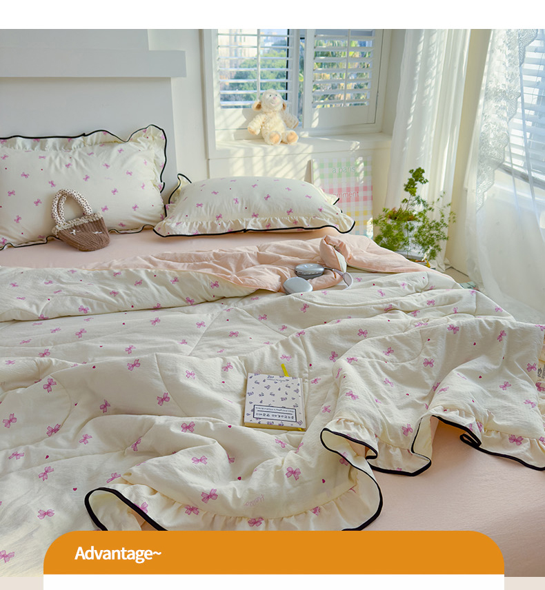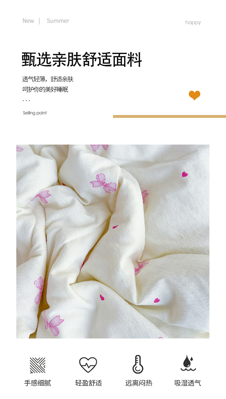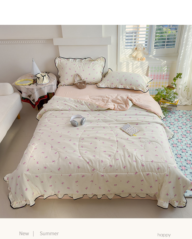 商品名称:慕尚 2025新款云感棉花边夏凉被空调被 粉蝴蝶结