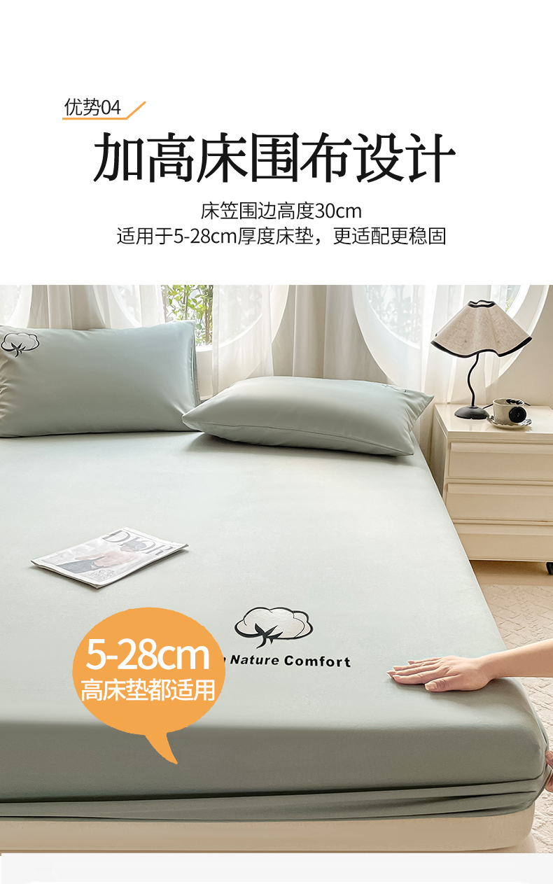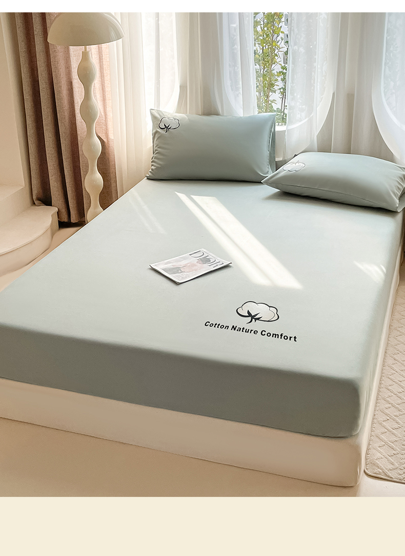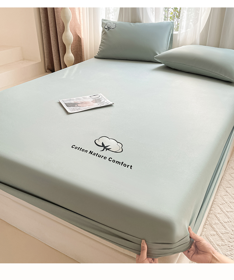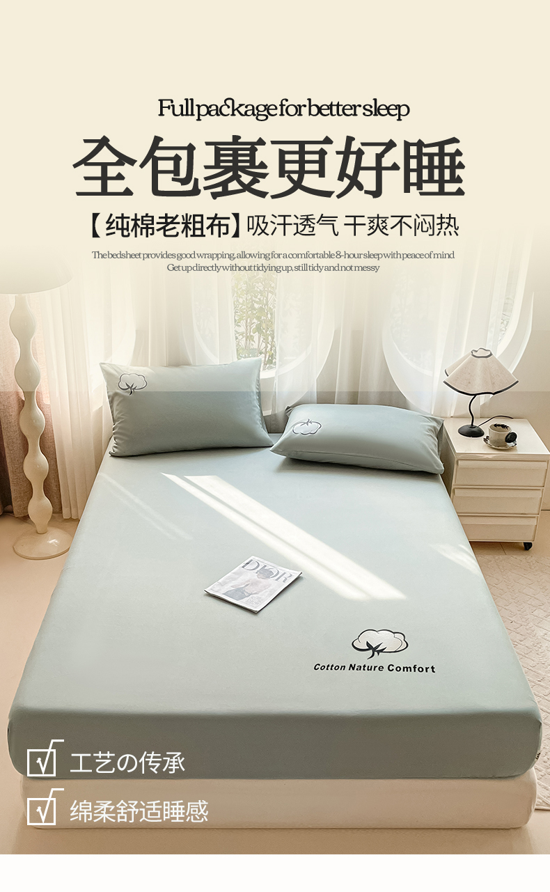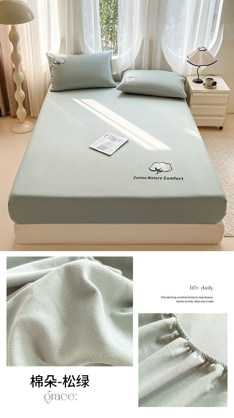布卢姆床垫 2025新款全棉烫画全棉老粗布床笠 棉朵-松绿
