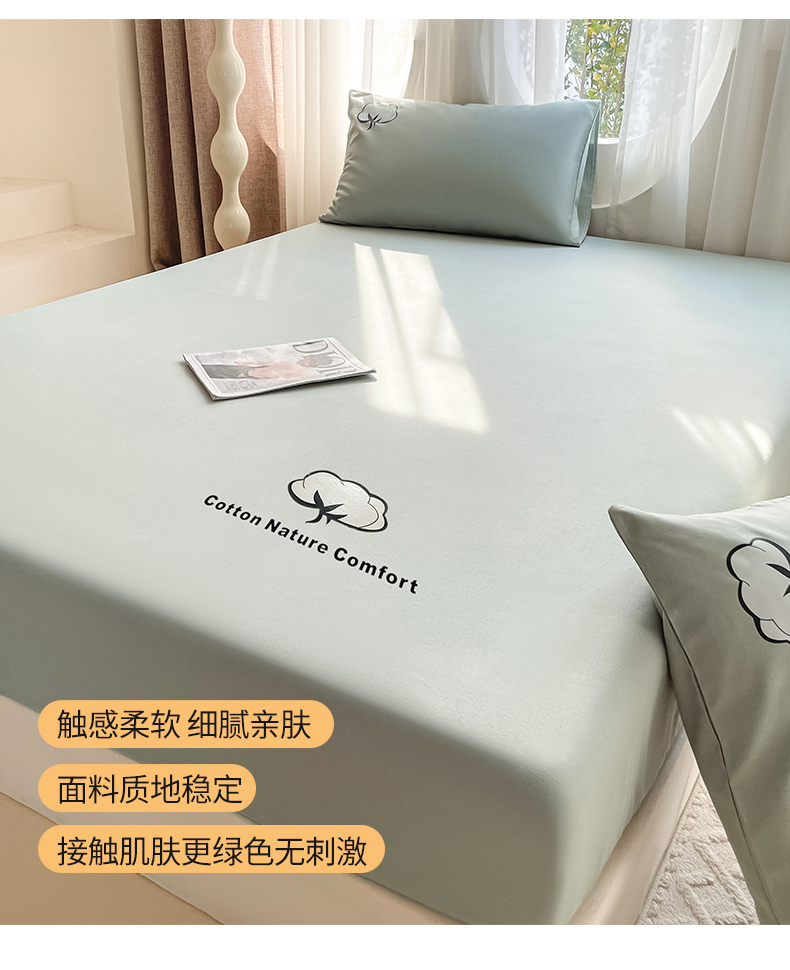 商品名称:布卢姆床垫 2025新款全棉烫画全棉老粗布床笠 棉朵-松绿
