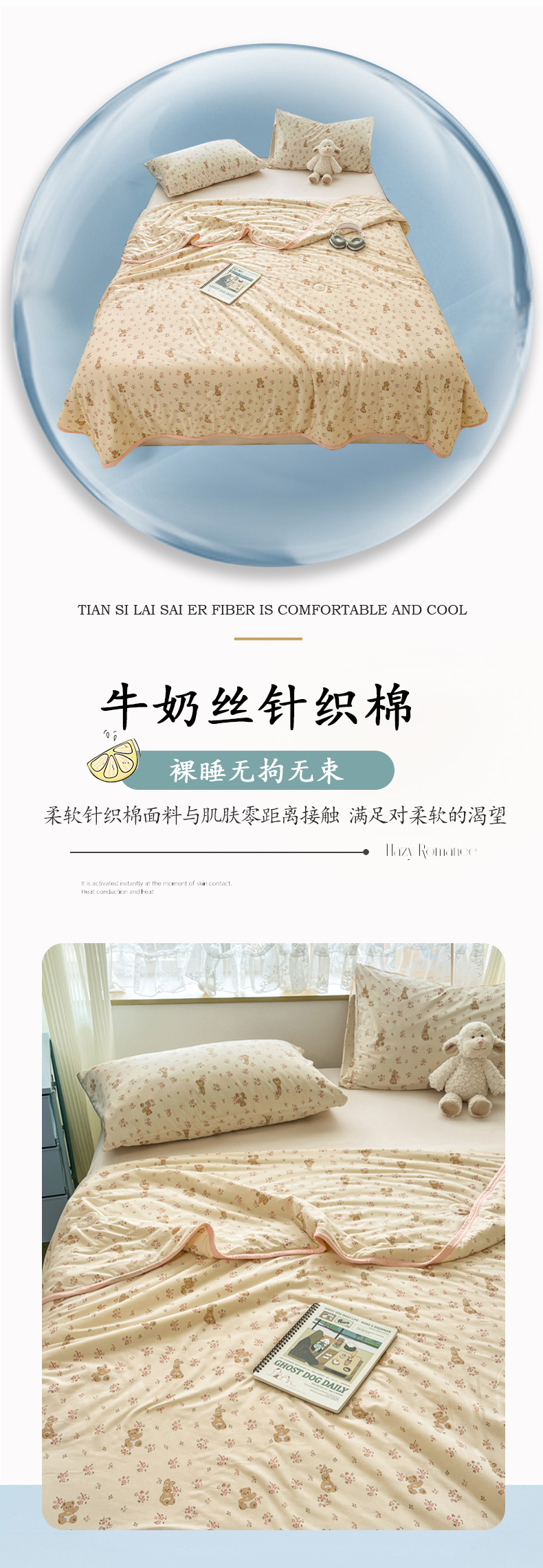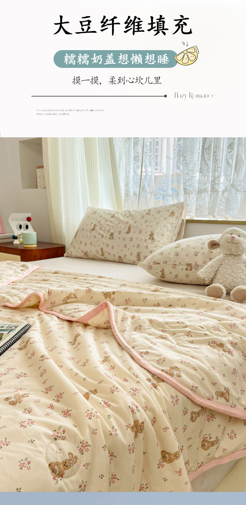 商品名称:葡萄家 2025新款A类母婴级大豆纤维牛奶丝针织棉夏凉被空调被-系列二 花粉