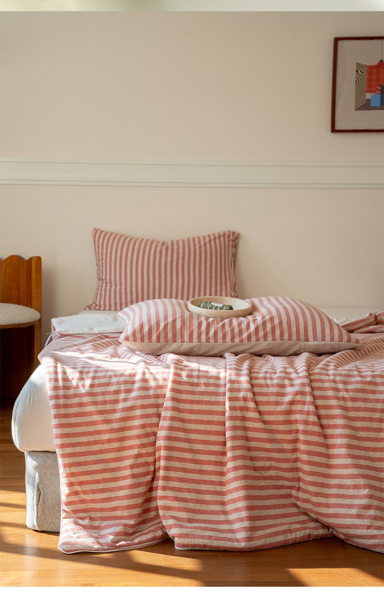 (总)华超针织 2025新款亲肤舒适全棉纯棉针织五件套四件套,奶糖+樱桃,杏粉+花田,杏灰+玫瑰