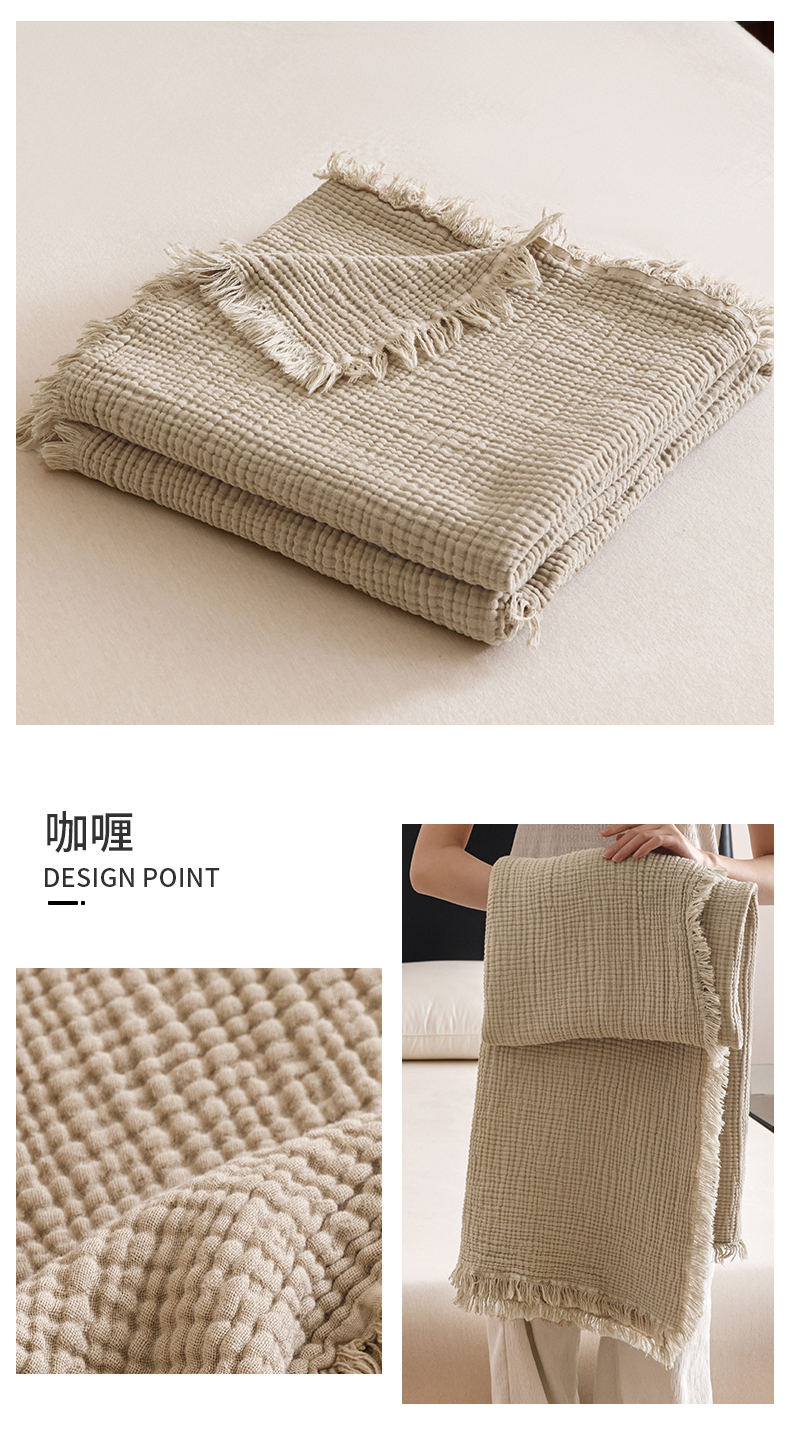 商品名称:瑞米家居 2025新款A类皱皱纱流苏毯盖毯毯子 咖喱