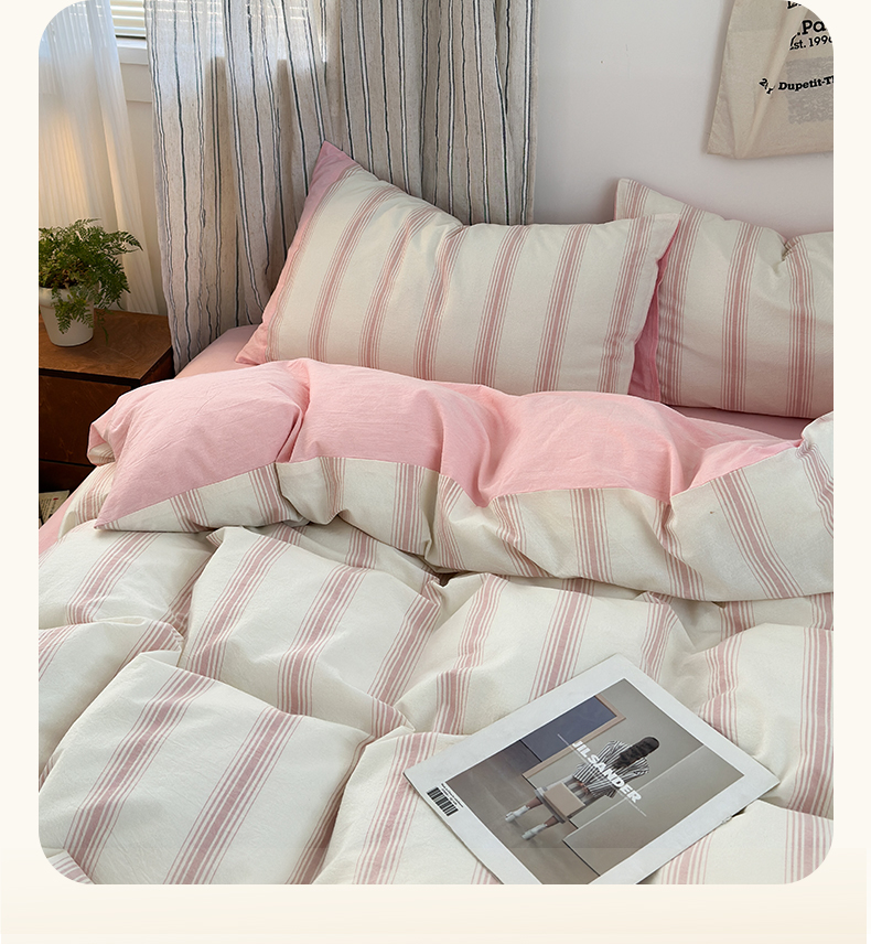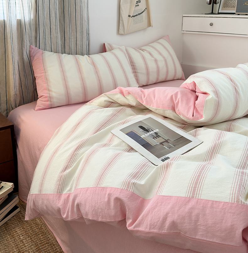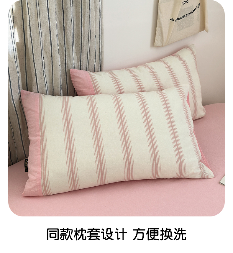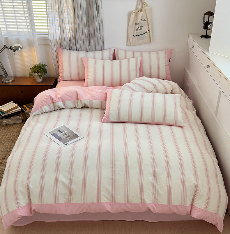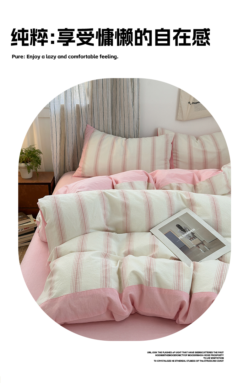 商品名称:娜娜 2025新款A类全棉色织水洗棉四件套 罗马系列-条纹粉
