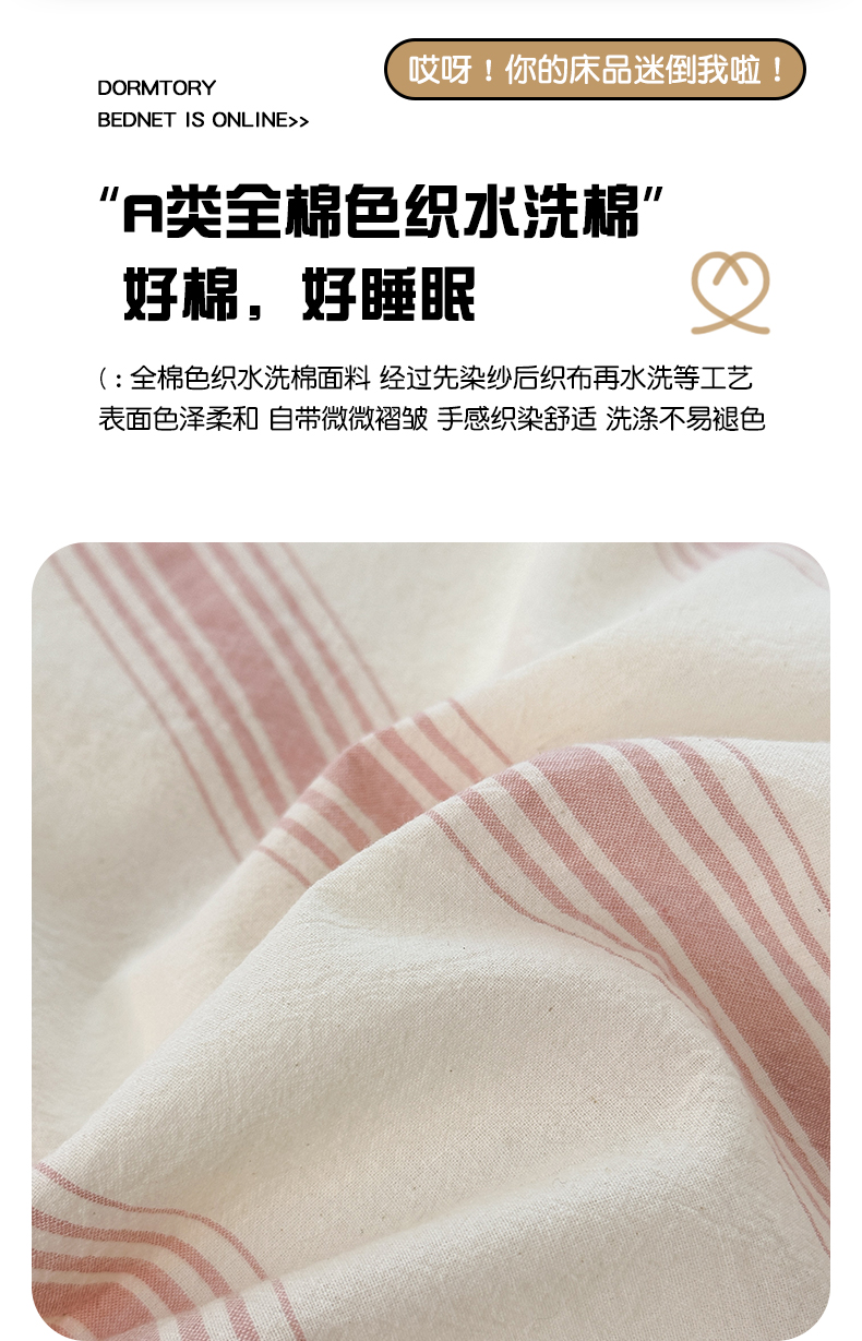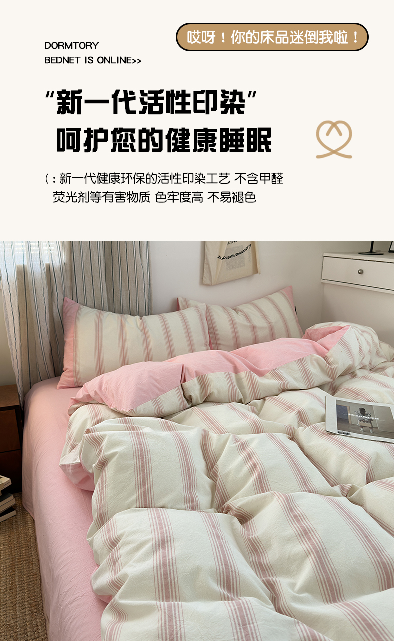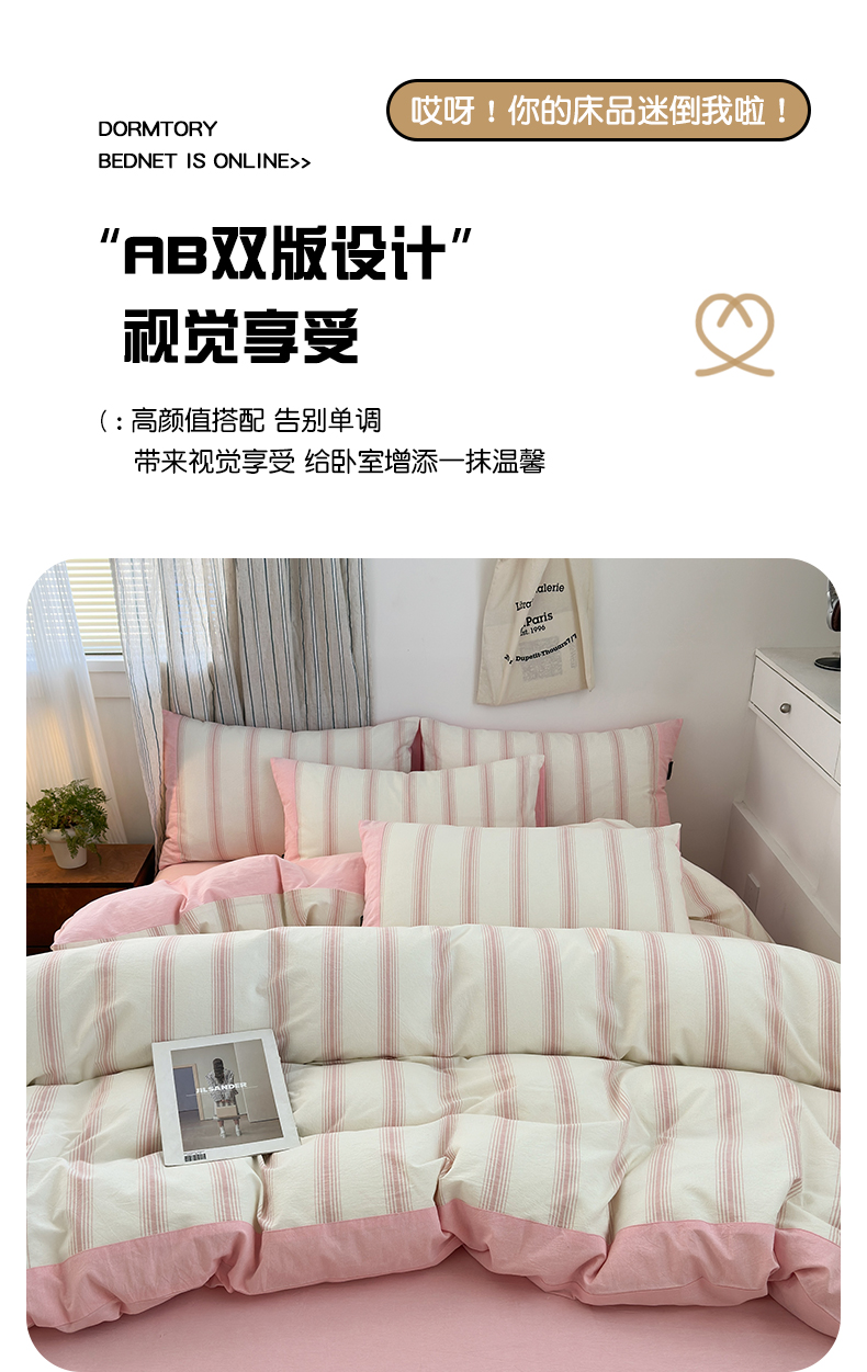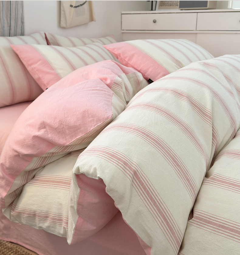 商品名称:娜娜 2025新款A类全棉色织水洗棉四件套 罗马系列-条纹粉