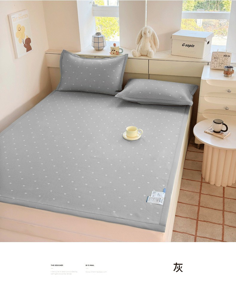 (总)凉百百 2024新款冰豆豆爱心款凉席冰丝凉席可折叠设计量大价优,爱心款-粉,爱心款-灰,爱心款-蓝,爱心款-绿