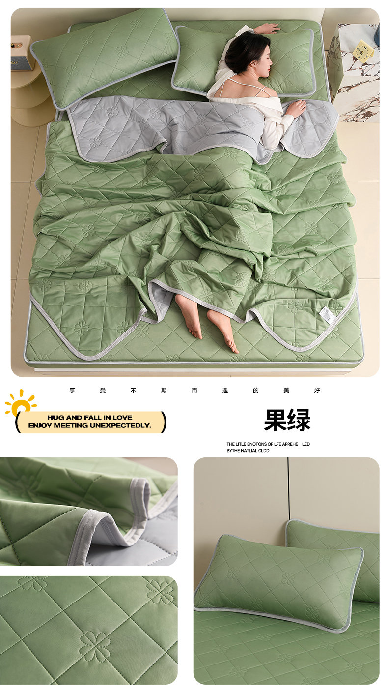 2025新款清凉舒适凉感丝夏被四件套 果绿