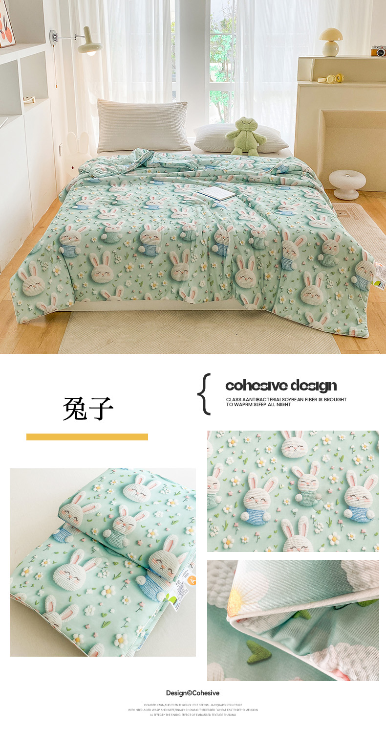 商品名称:七里香 2025新款防锦安带氨纶5D凉感丝夏被 兔子