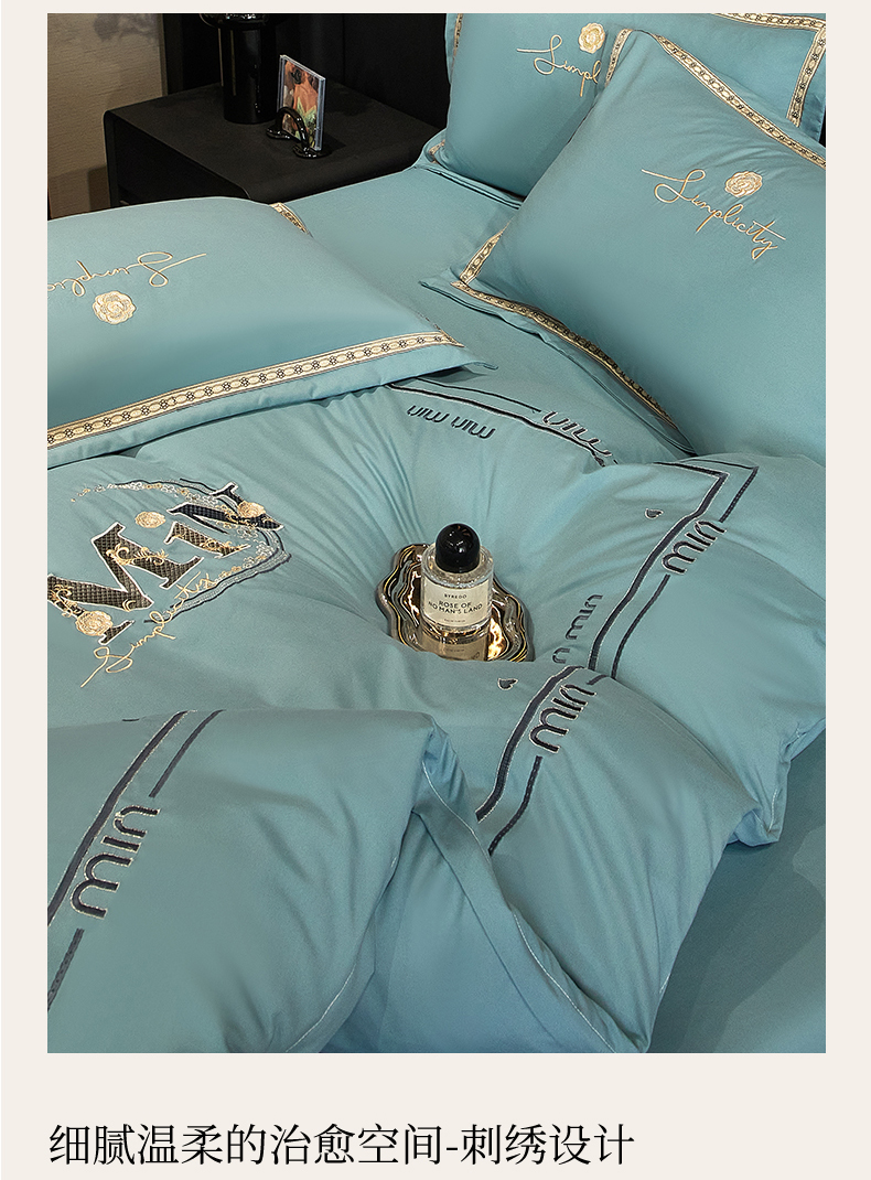 当前位置: 91家纺网 > 商品网购 > 床品套件 > 四件套 > 水洗棉四件套 > 佳宇轩 2025新款亲肤水洗棉刺绣四件套系列 简约时代-天青