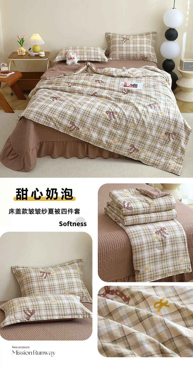 商品名称:人人爱家纺 2025新款皱皱纱床盖夏被四件套 甜心奶泡