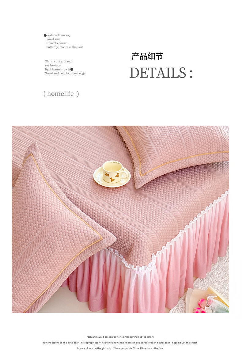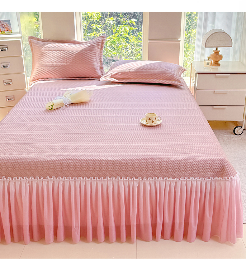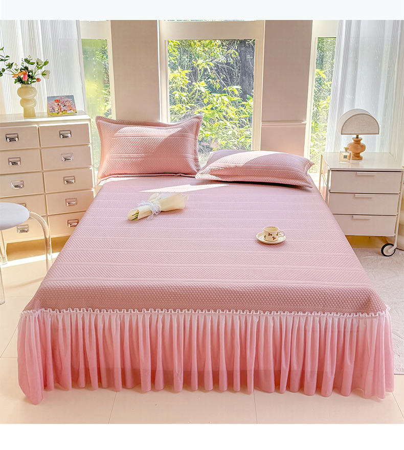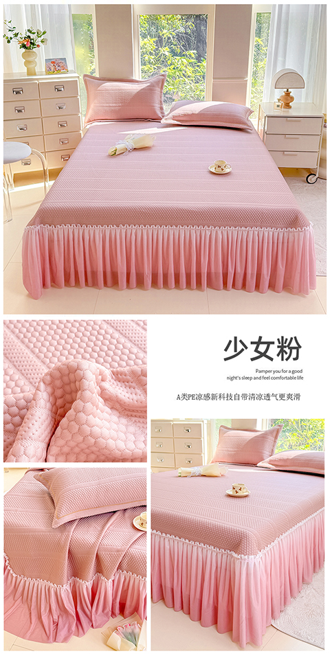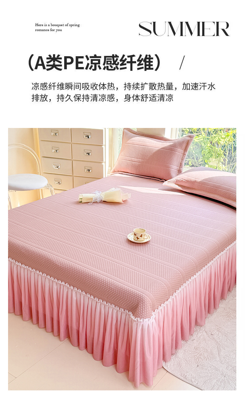 商品名称:慧菲 2025新款渐变床裙PE高分子凉感席床裙凉席三件套 少女粉