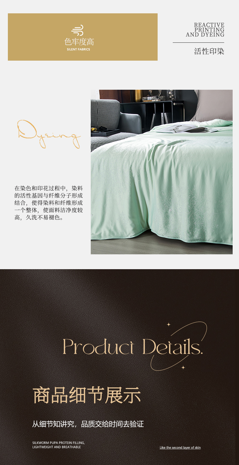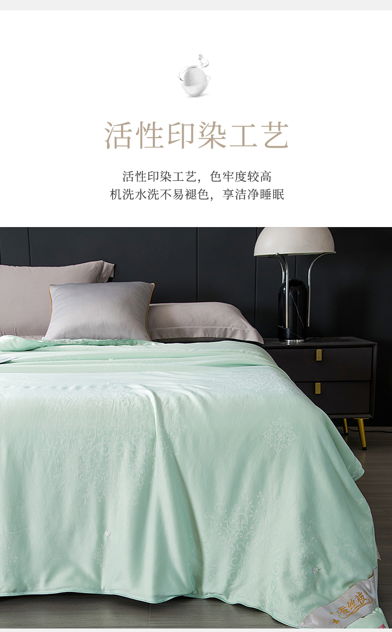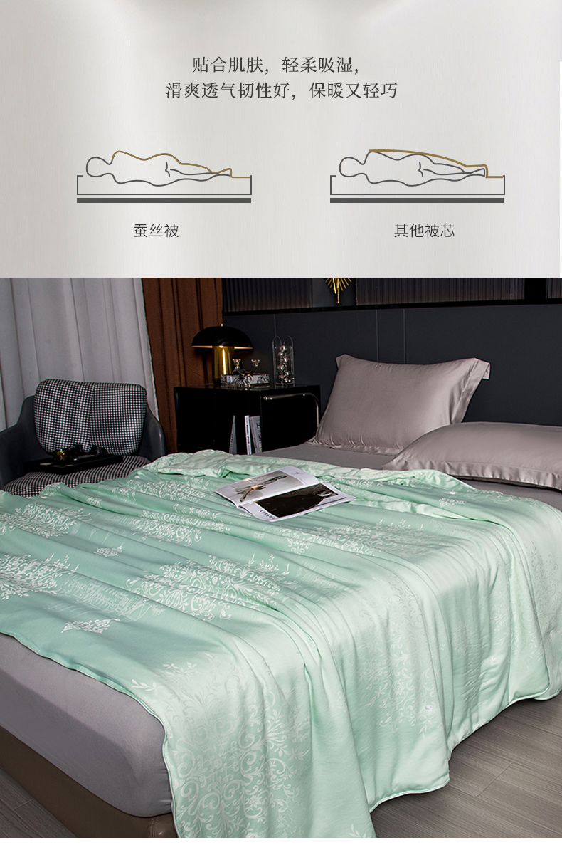鑫田家纺 2025新款100%桑蚕丝填充蚕丝被夏凉被高档提花面料 绿色