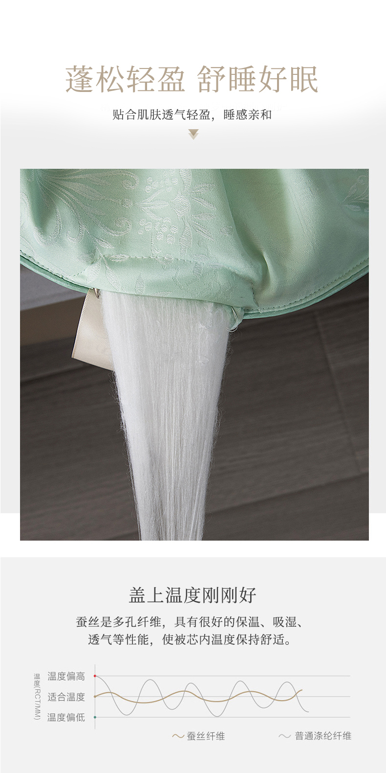 商品名称:鑫田家纺 2025新款100%桑蚕丝填充蚕丝被夏凉被高档提花面料 绿色