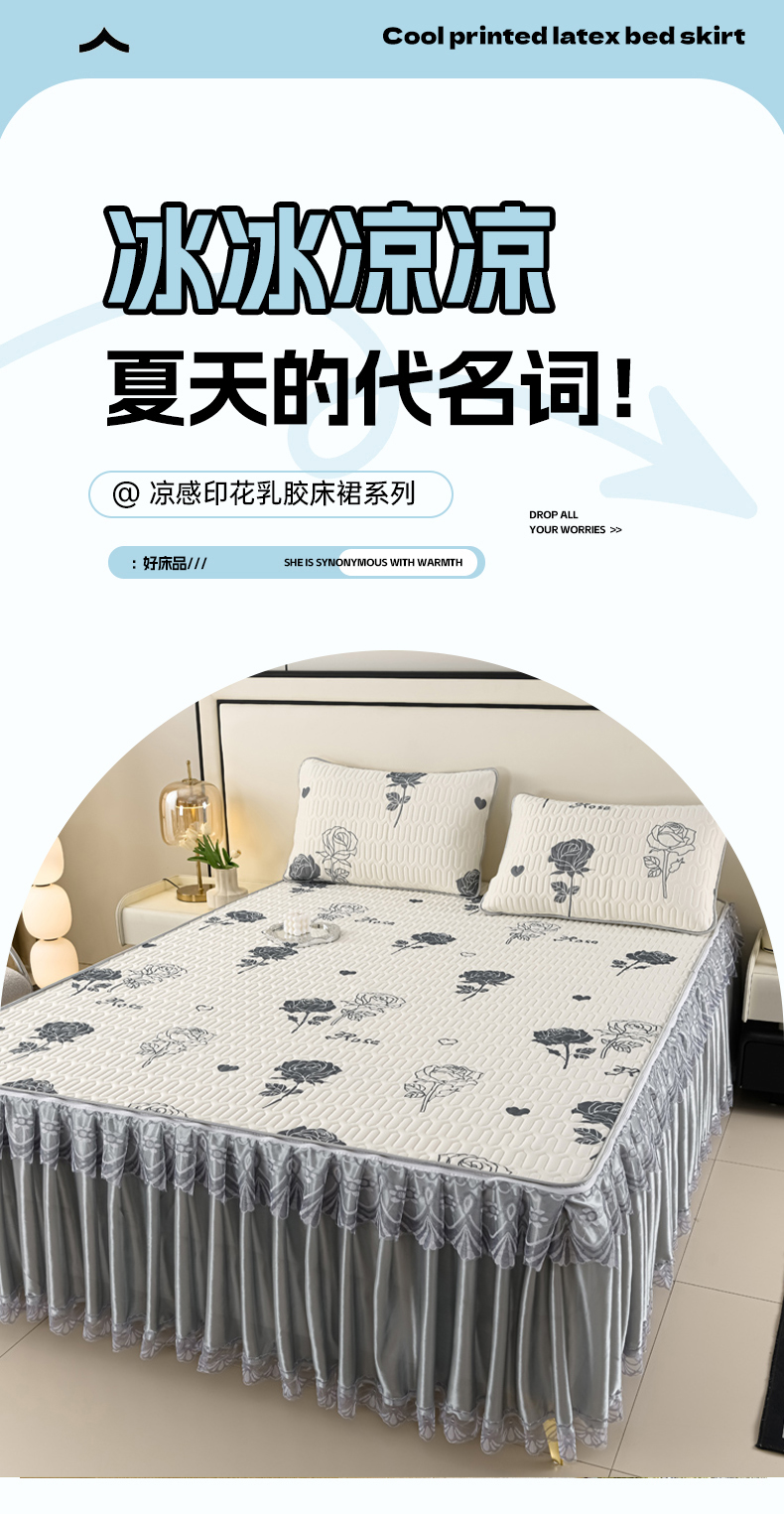 商品名称:牵依 2025新款胶质可拆卸床裙凉席席子 花季
