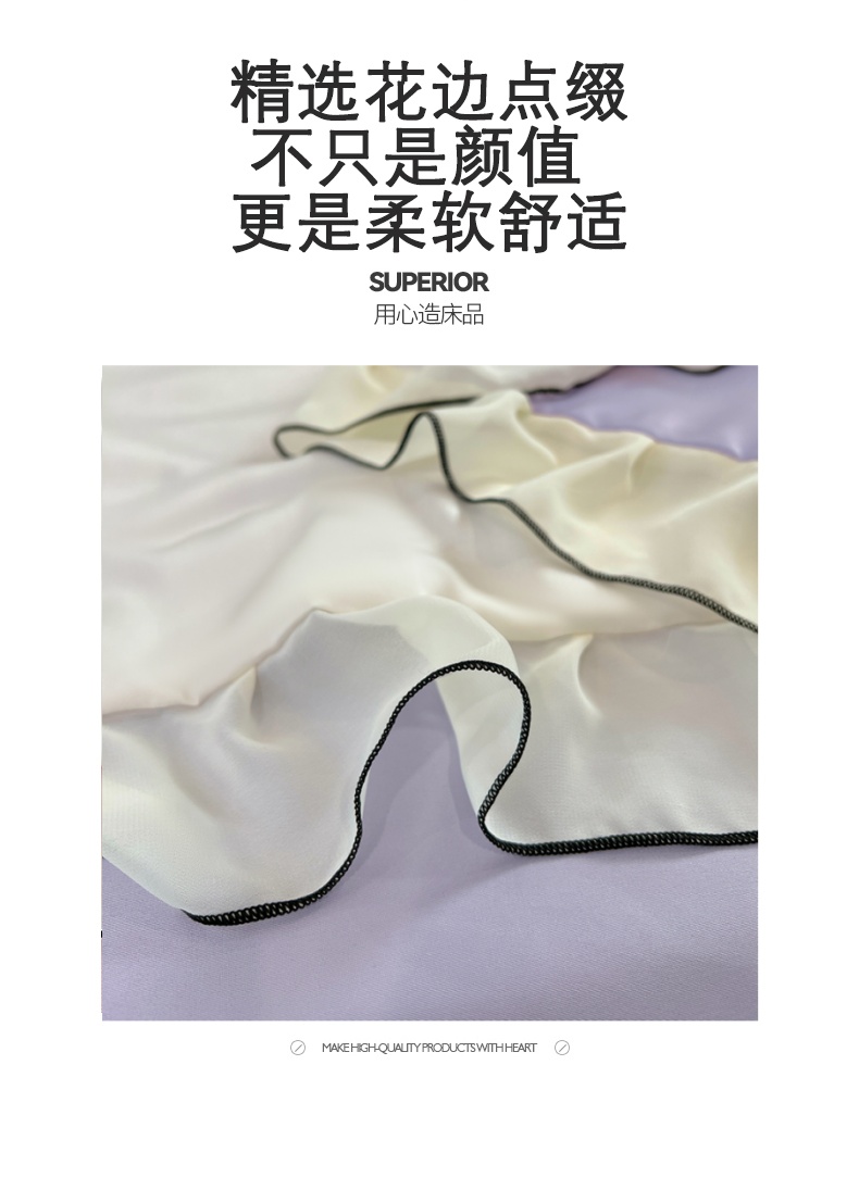 商品名称:圣比熊 2025新款水洗真丝花边枕套凉感枕头套夏天薄款枕芯套 奶油浅紫