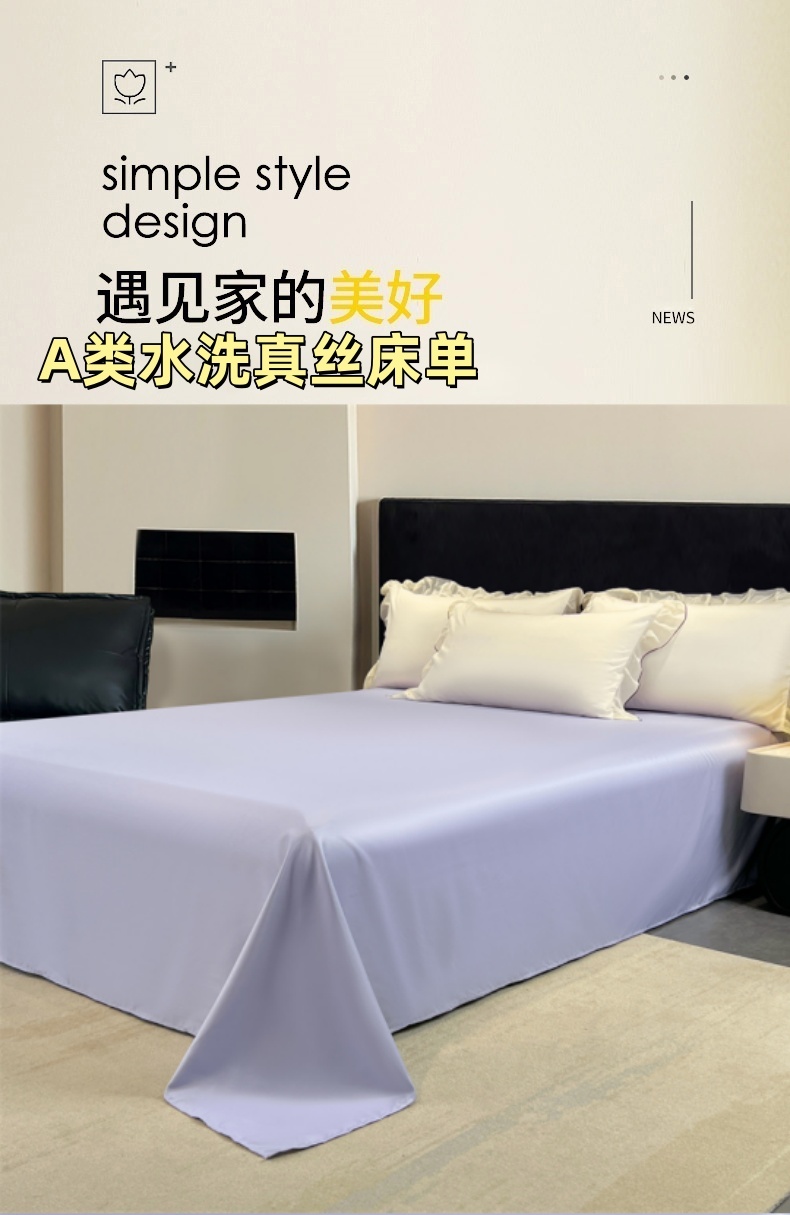 商品名称:圣比熊 2025新款水洗真丝床单冰丝凉感宿舍被单三件套 奶油浅紫
