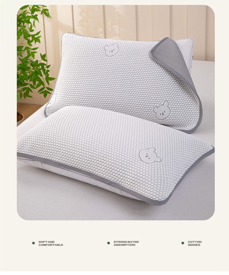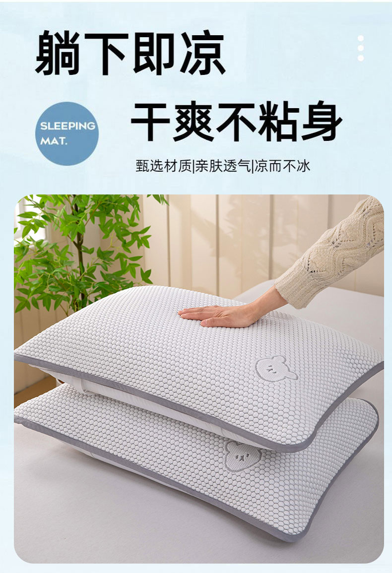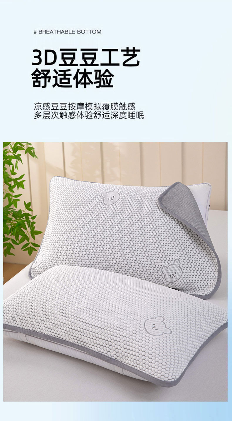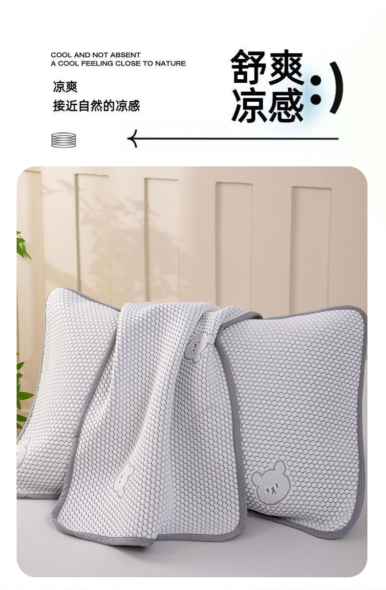 (总)帛洵 2025新款自然凉冰豆豆枕巾系列-熊头,粉,灰,蓝,绿