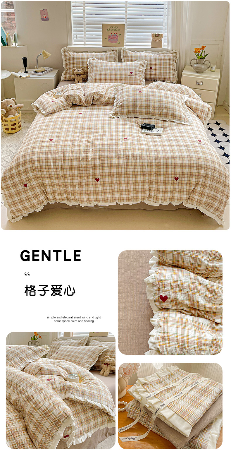 当前位置: 91家纺网 > 商品网购 > 床品套件 > 四件套 > 其它四件套 > 优选良品 2025新款直播热款赫本风皱皱双层纱花边款针织皱皱纱法式印花吊边床单三件套床笠四件套 格子爱心