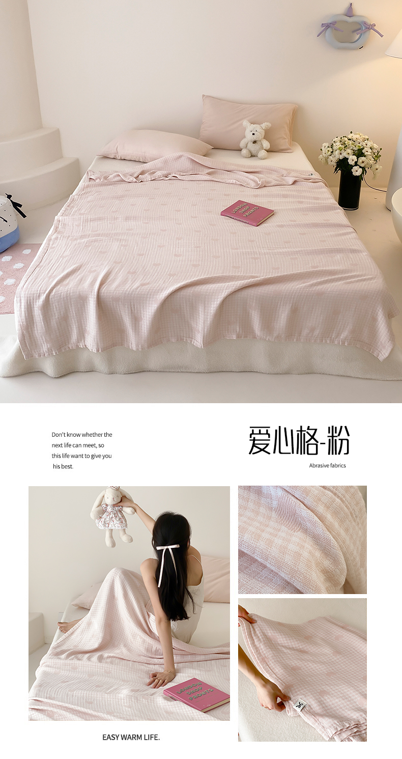 商品名称:麻依 2025新款色织提花天丝棉冷感毯系列 爱心格-粉