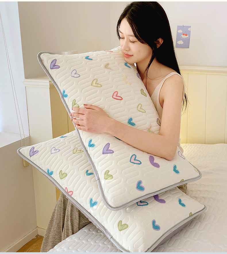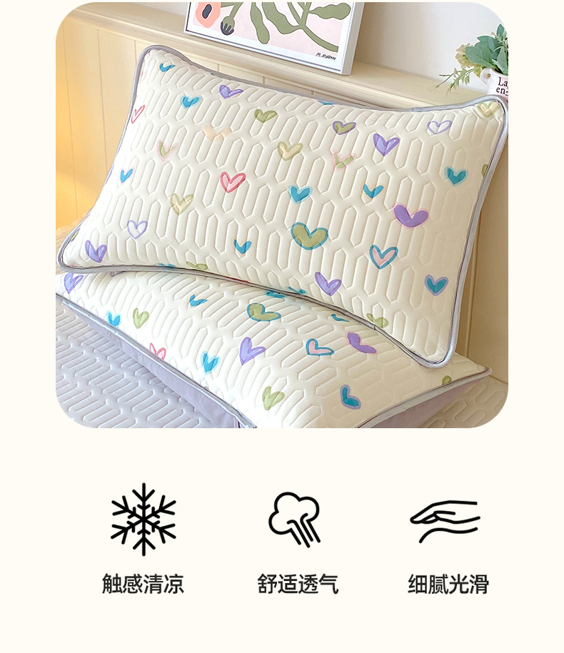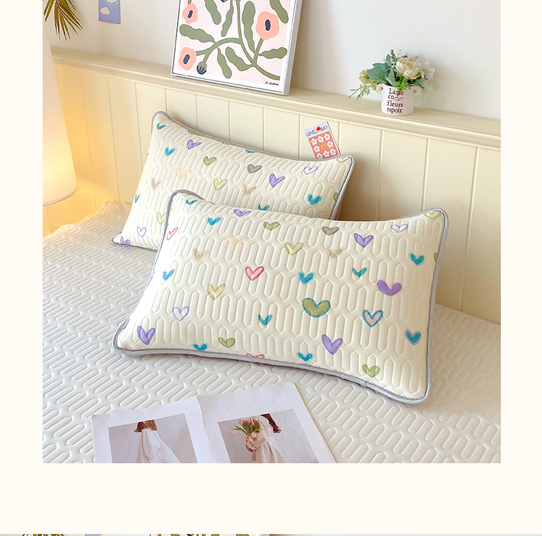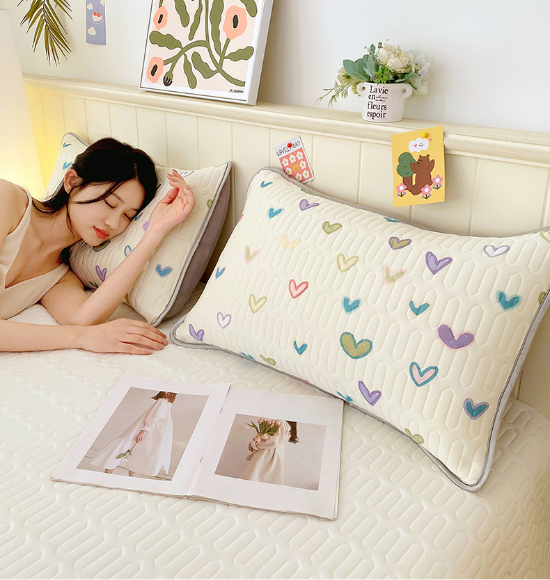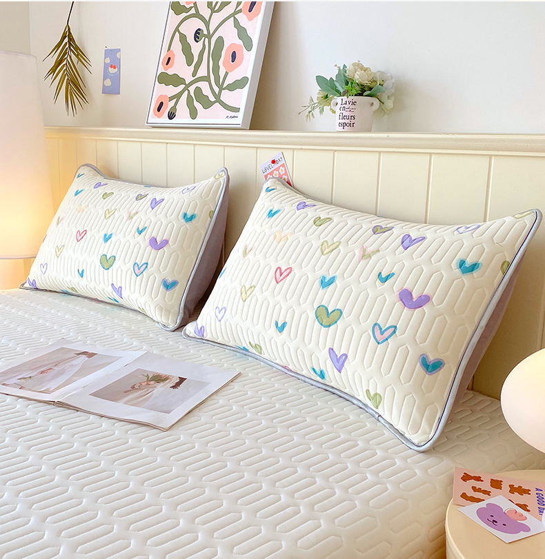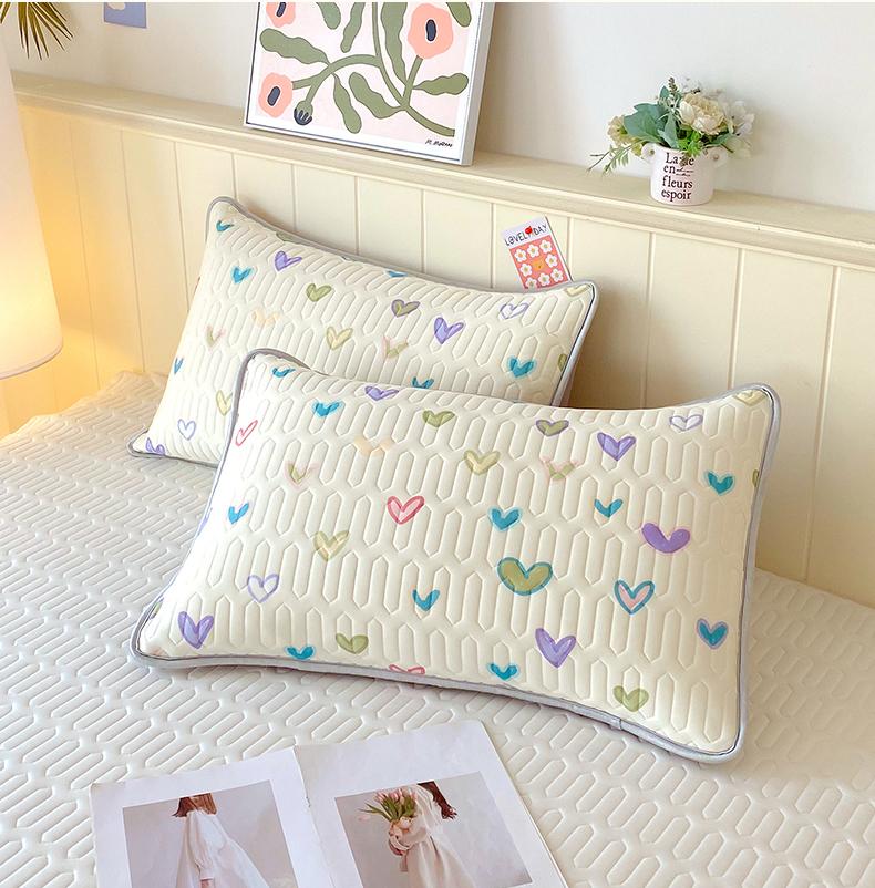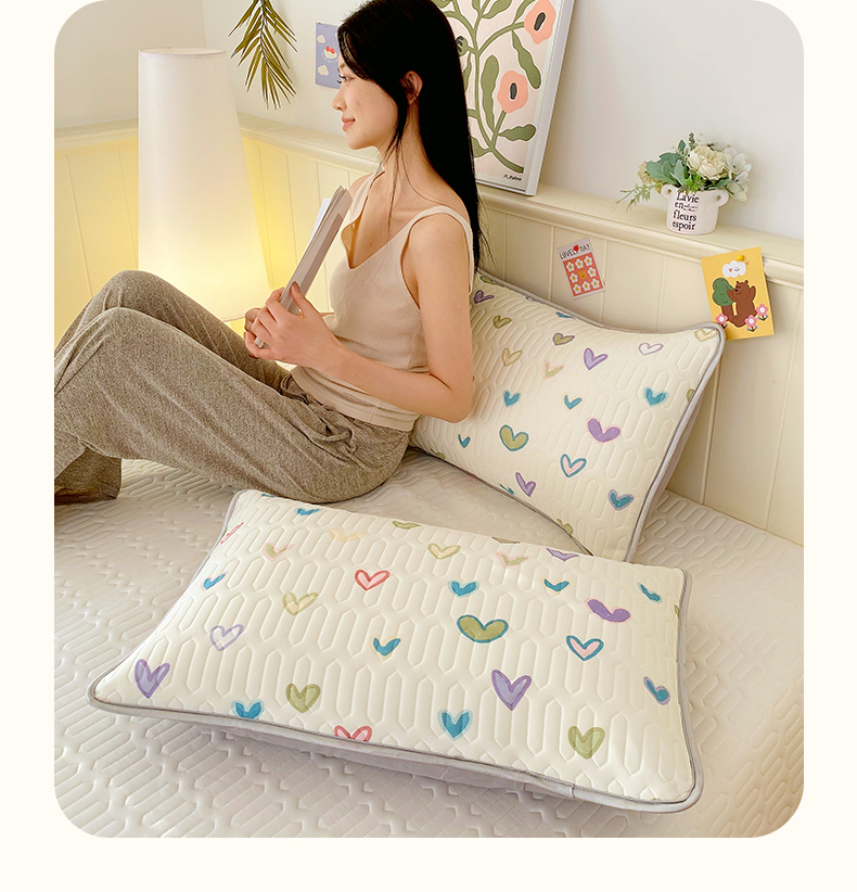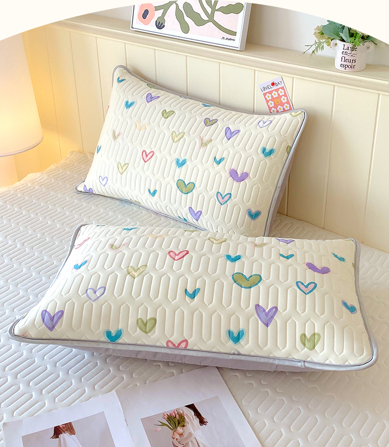 雨彤家纺 2025年新款A类凉感丝乳胶单人枕套 梦幻爱心