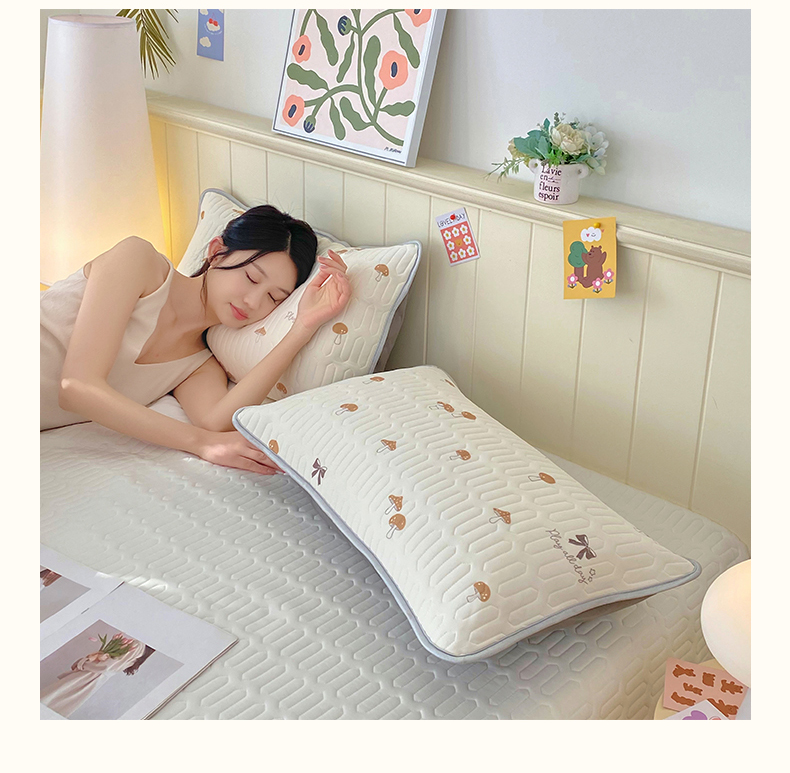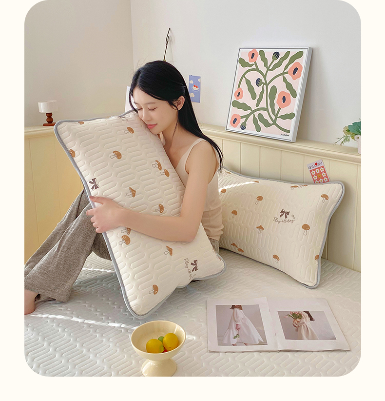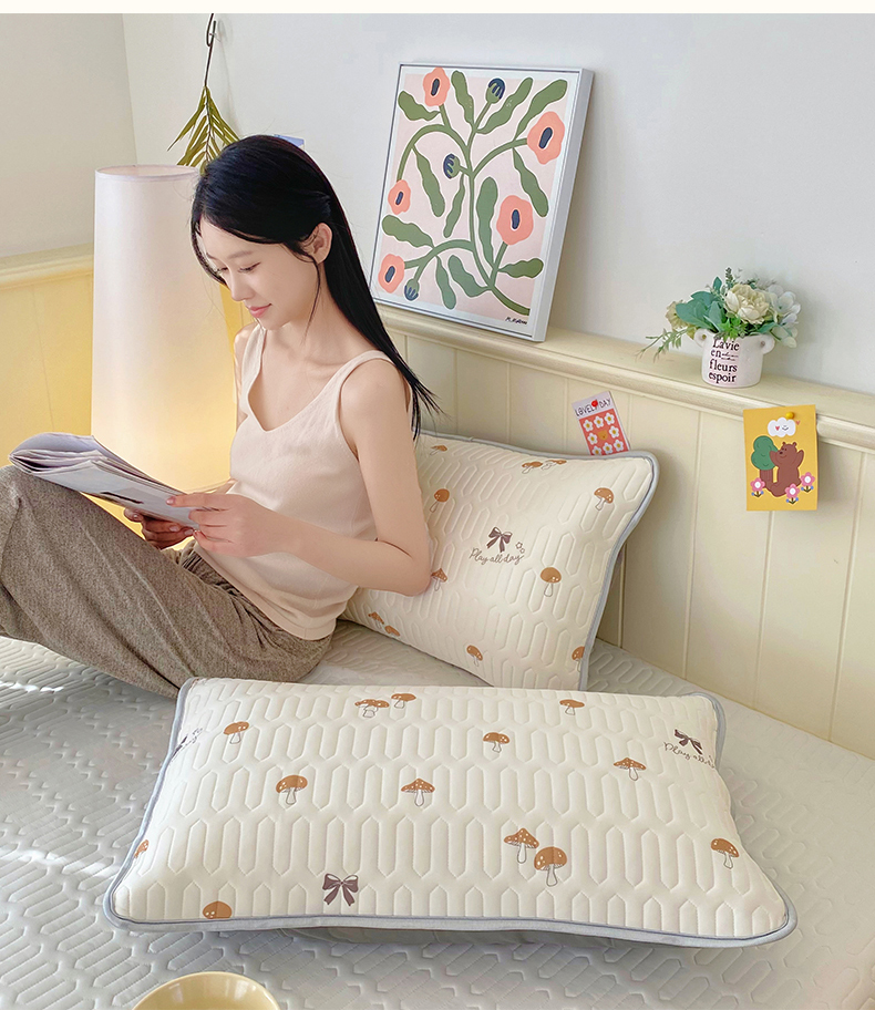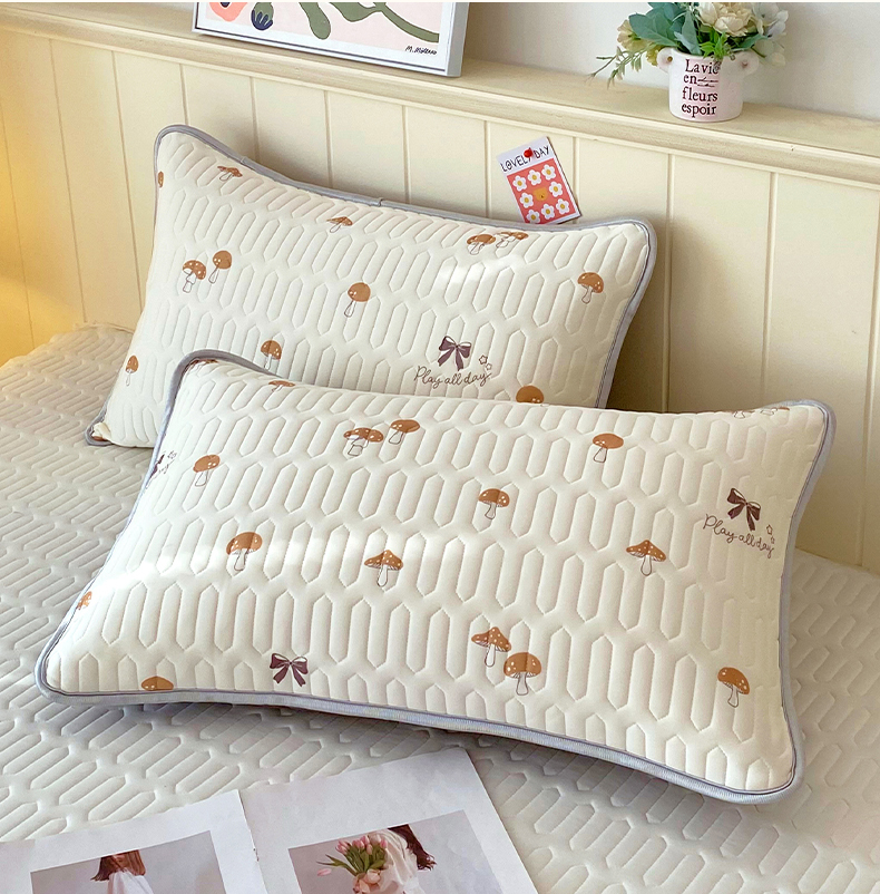 雨彤家纺 2025年新款A类凉感丝乳胶单人枕套 萌趣蘑菇-棕