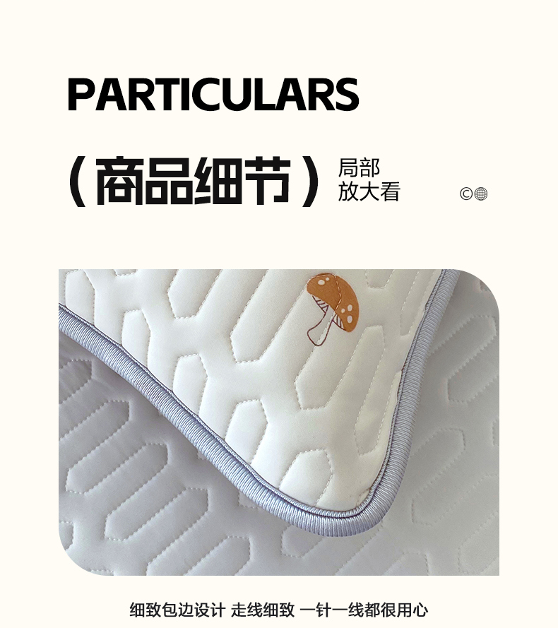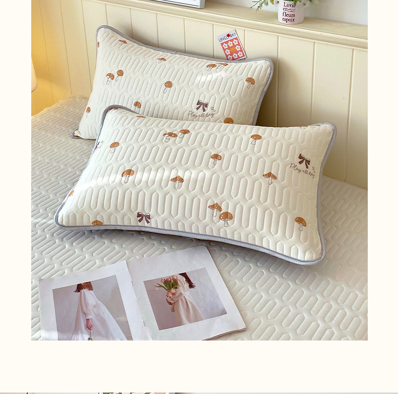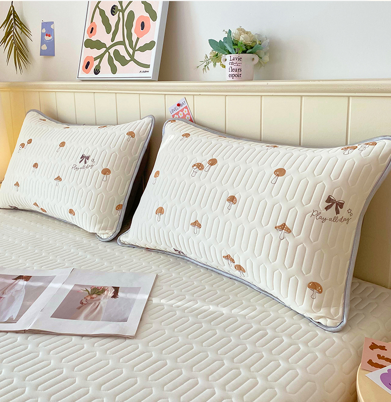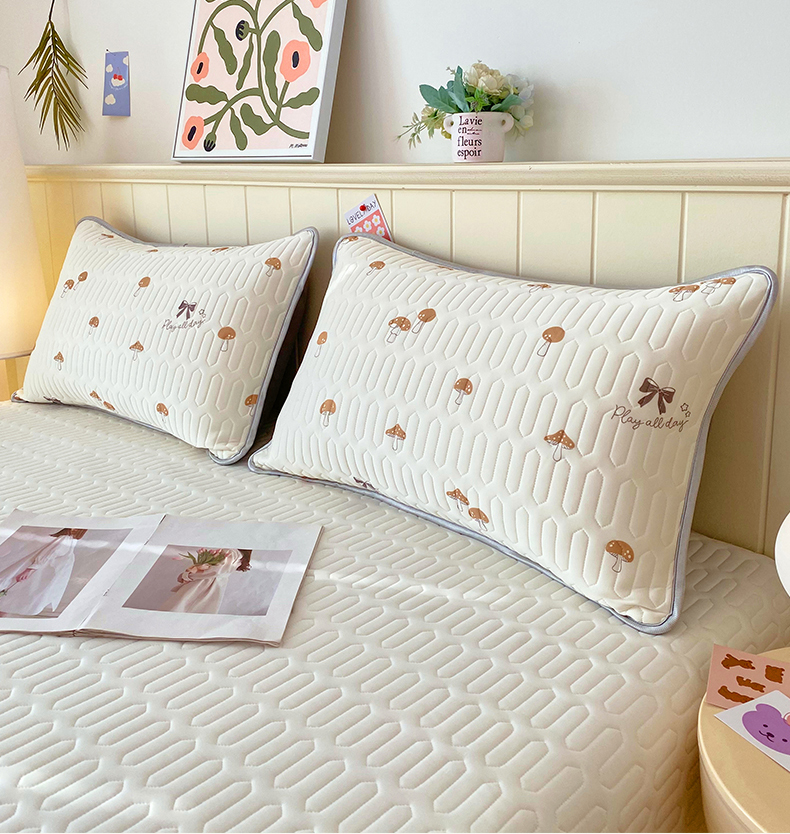 商品名称:雨彤家纺 2025年新款A类凉感丝乳胶单人枕套 萌趣蘑菇-棕