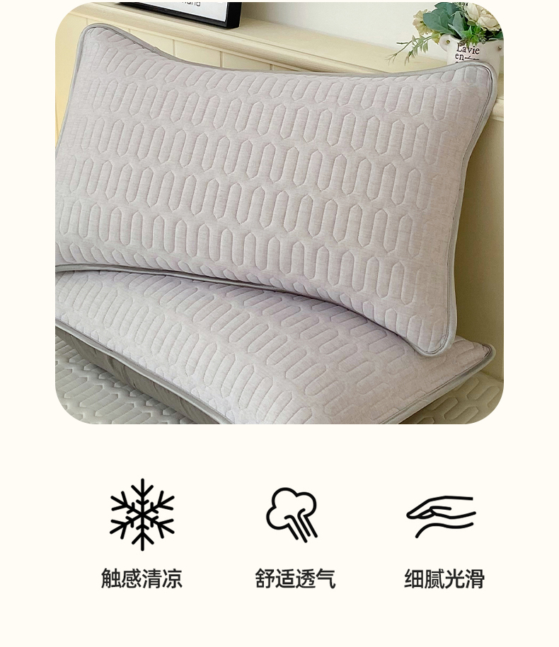 商品名称:雨彤家纺 2025年新款A类凉感丝乳胶单人枕套 肌理纹-灰