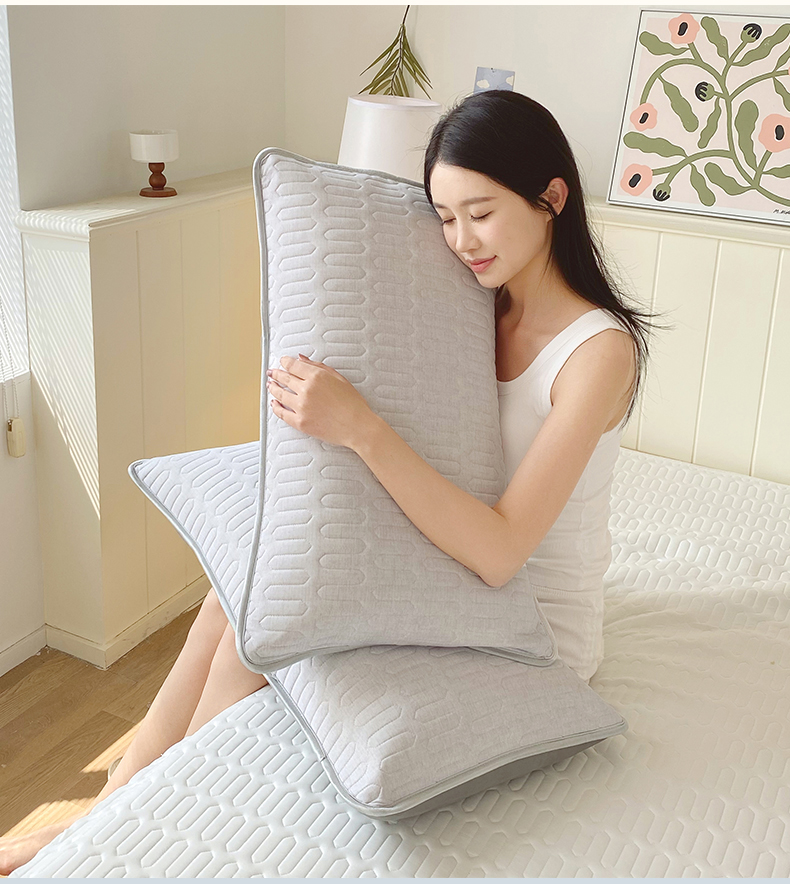 雨彤家纺 2025年新款A类凉感丝乳胶单人枕套 肌理纹-灰