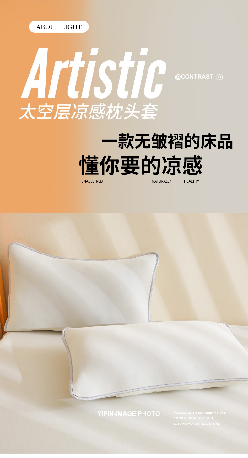 商品名称:LIFE.丽芙 2025春夏新款独家研发太空层凉感冰丝枕头套素色包边款 奶昔黄