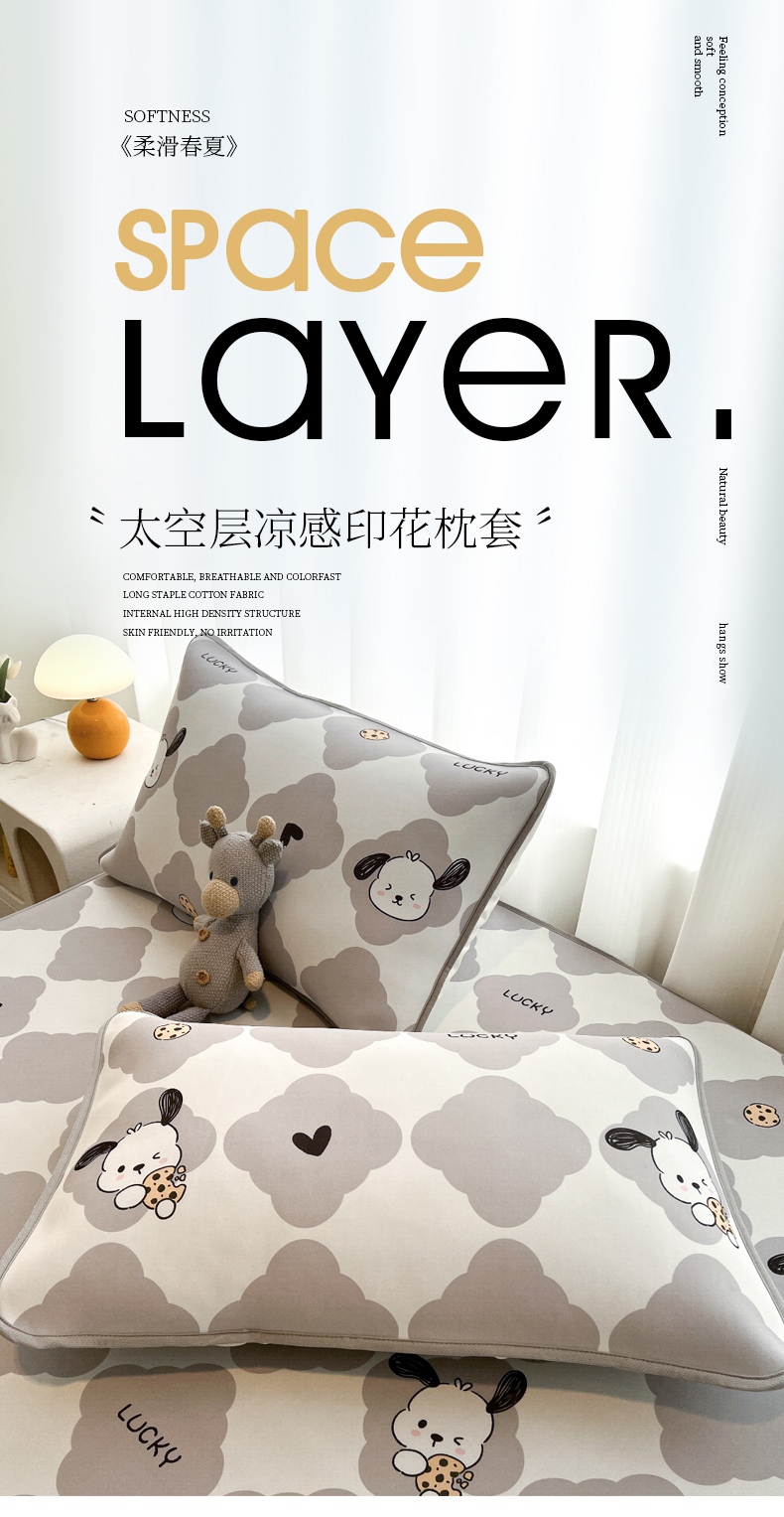 商品名称:LIFE.丽芙 2025春夏新款独家研发太空层凉感冰丝枕头套印花包边款 饼干狗