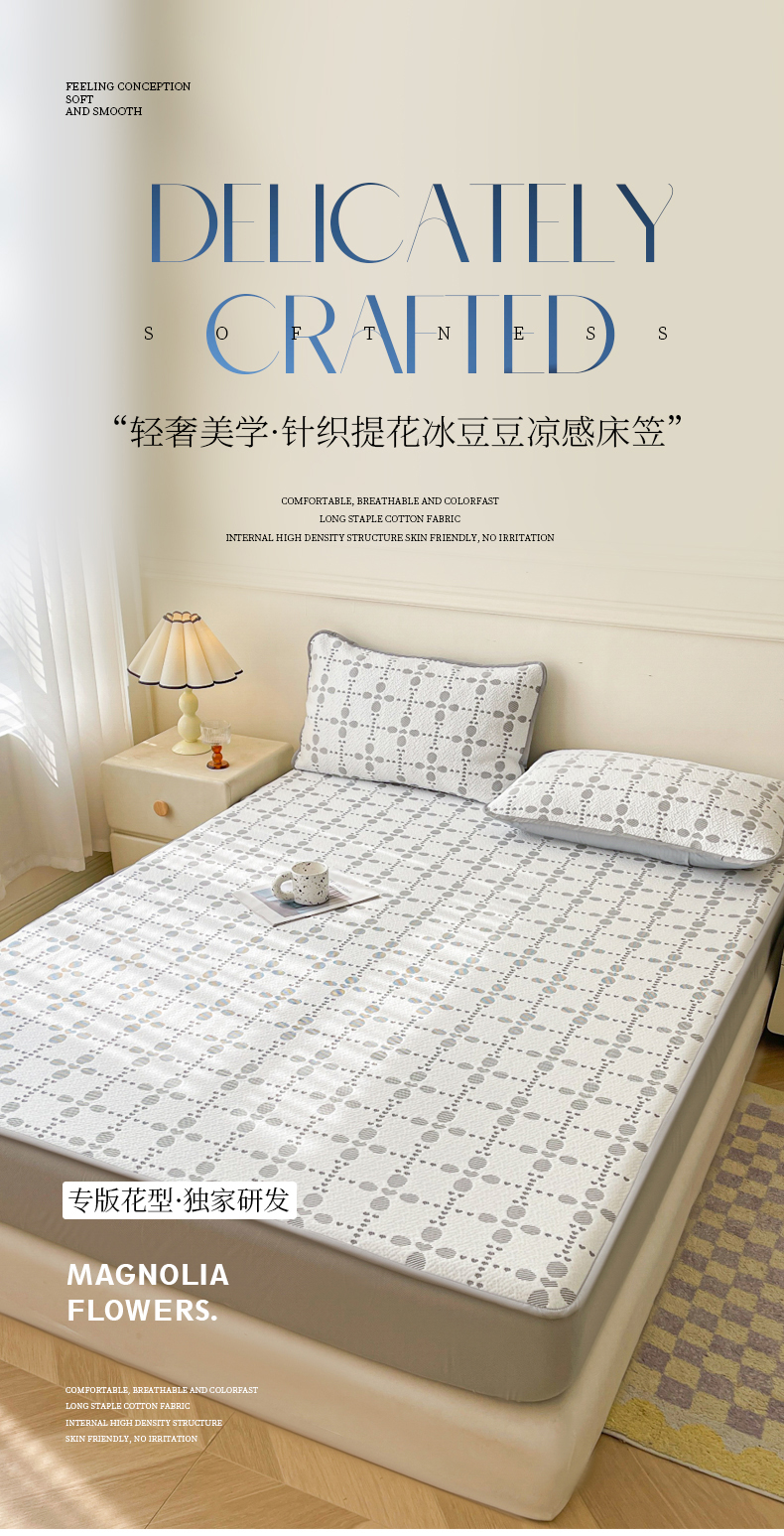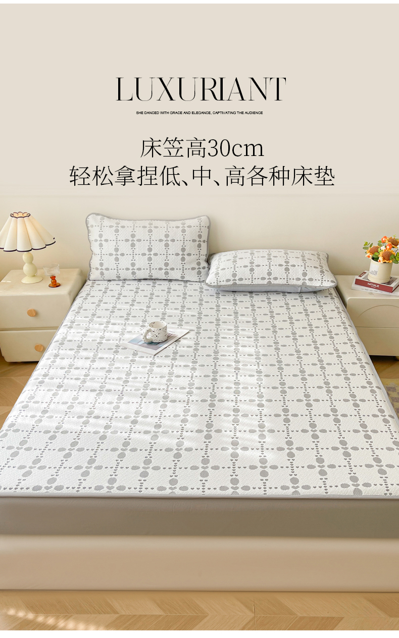 当前位置: 91家纺网 > 商品网购 > 床上用品 > 凉席 > 其他凉席 > LIFE.丽芙 2025春夏季新品A类针织提花冰凉豆豆凉感软席床笠三件套加厚冰丝凉席床罩单件(450克)-风格一 维塔-灰