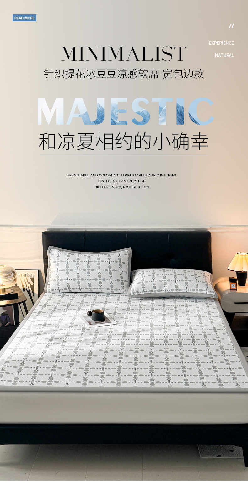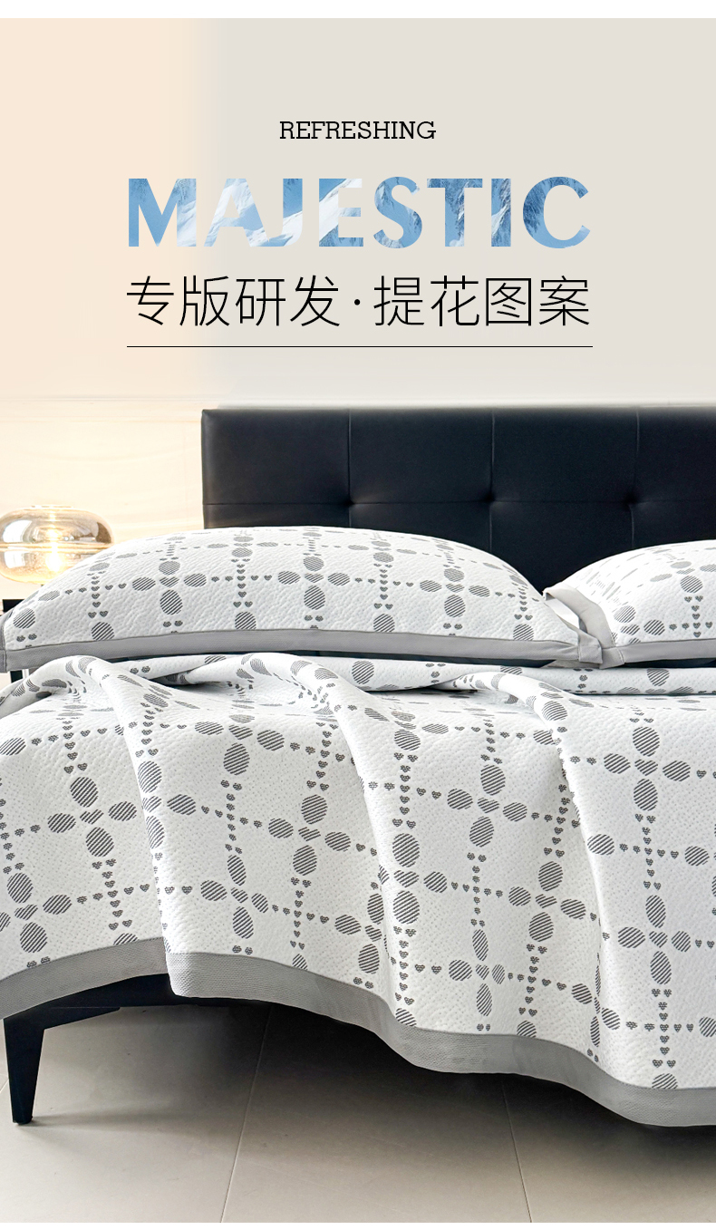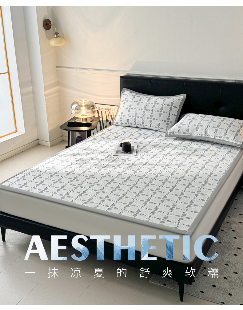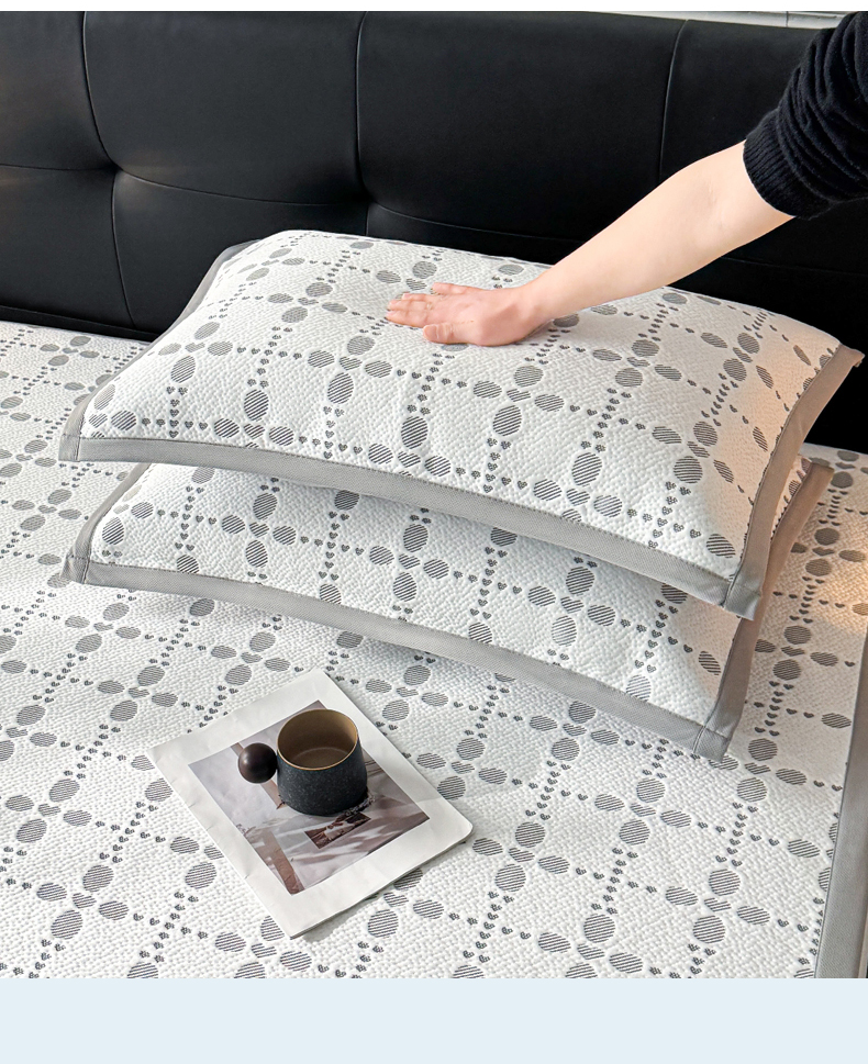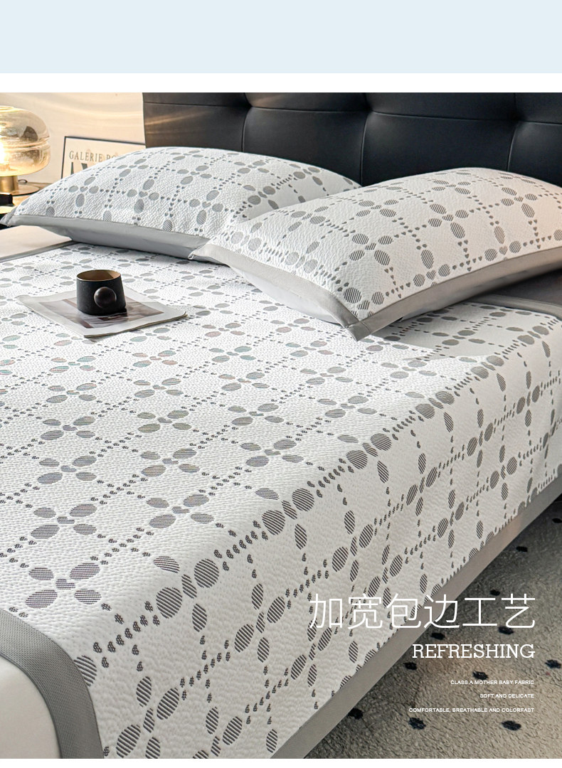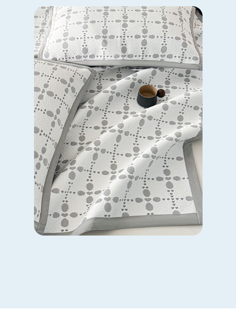 商品名称:LIFE.丽芙 2025春夏季新品A类针织提花冰凉豆豆凉感软席子平铺绑带款冰丝凉席三件套(450克)-风格一 维塔-灰