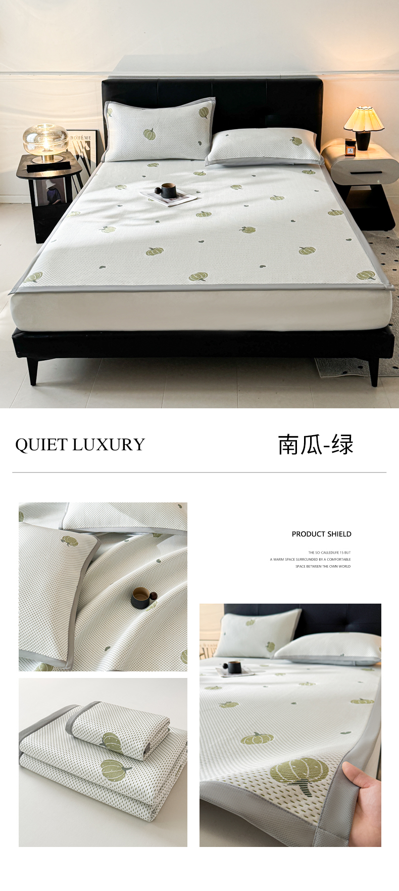 LIFE.丽芙 2025春夏季新品A类针织提花冰凉豆豆凉感软席子平铺绑带款冰丝凉席三件套(450克)-风格一 维塔-灰