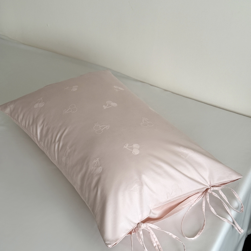 鹿班家居 2025年新品100S长绒棉提花单品枕套系列(第一组)【标准会员-2元】 单品枕套-奶油樱桃粉色