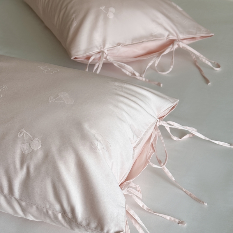 商品名称:鹿班家居 2025年新品100S长绒棉提花单品枕套系列(第一组)【标准会员-2元】 单品枕套-奶油樱桃粉色