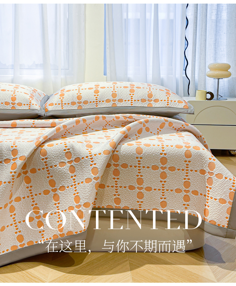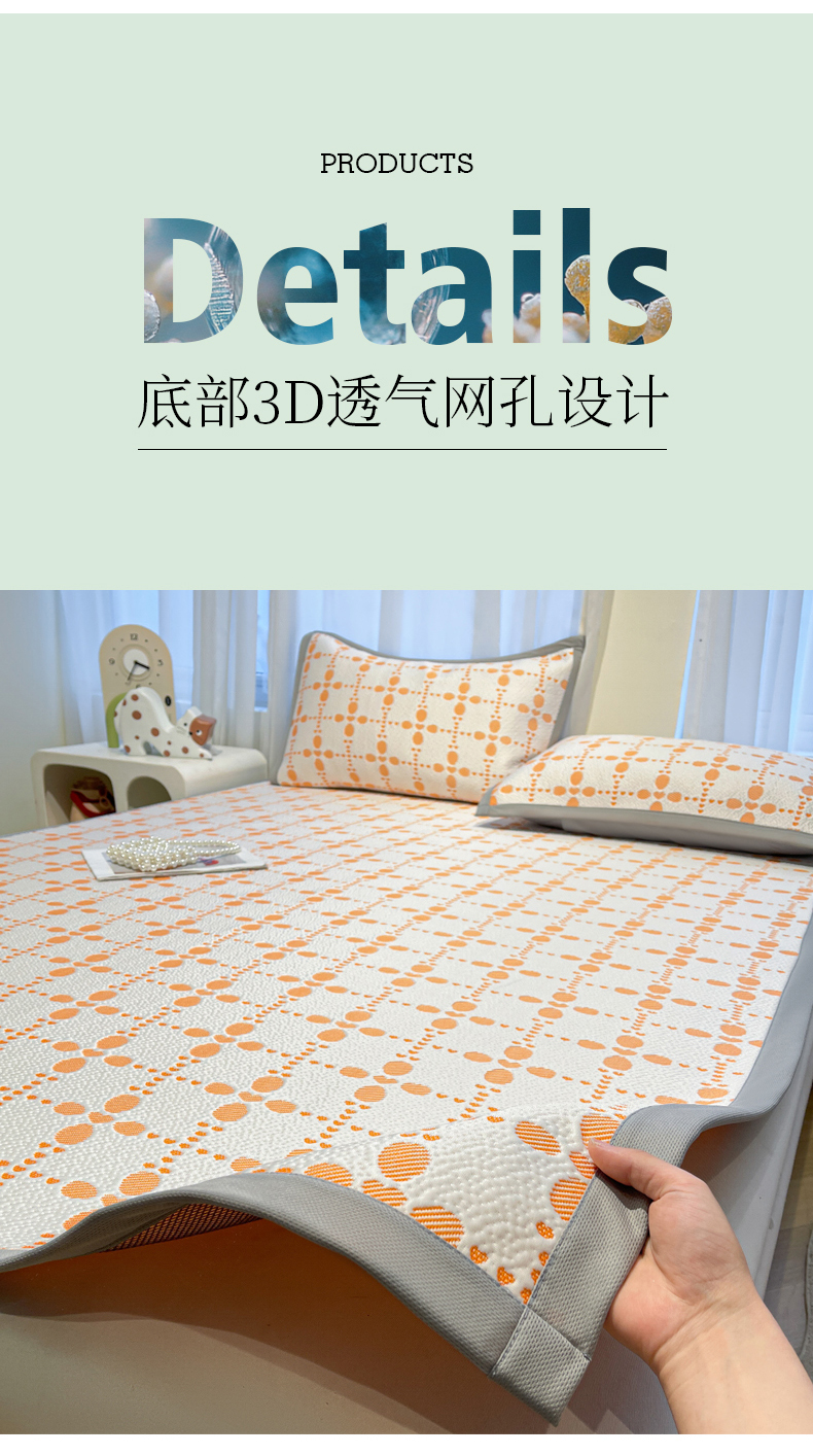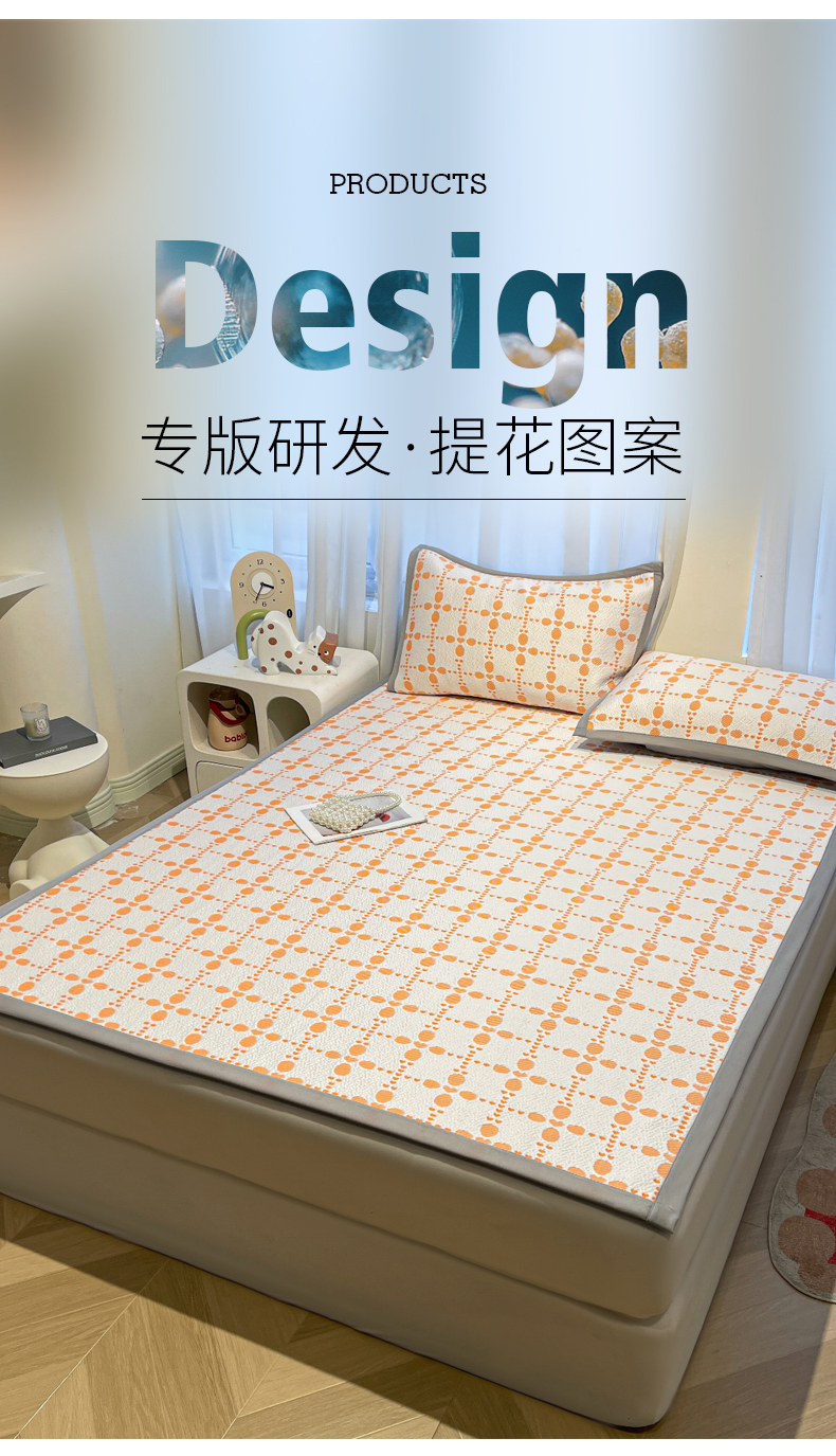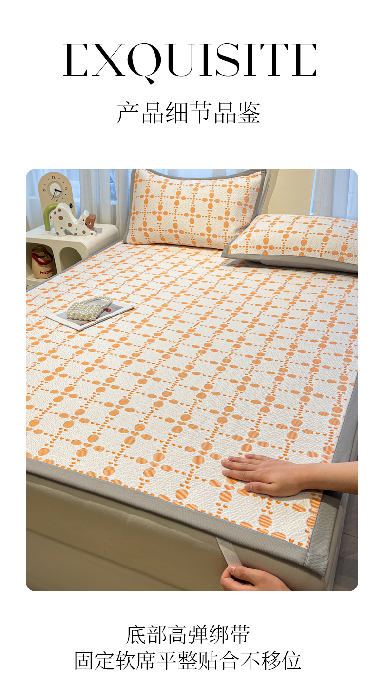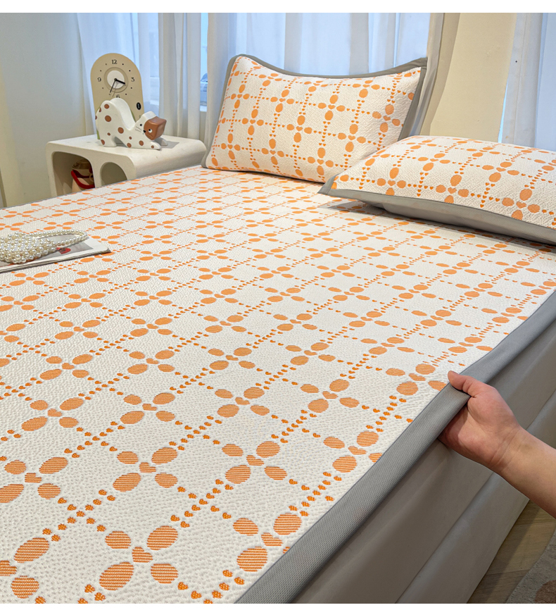商品名称:LIFE.丽芙 2025春夏季新品A类针织提花冰凉豆豆凉感软席子平铺绑带款冰丝凉席三件套(450克)-风格二 维塔-橘