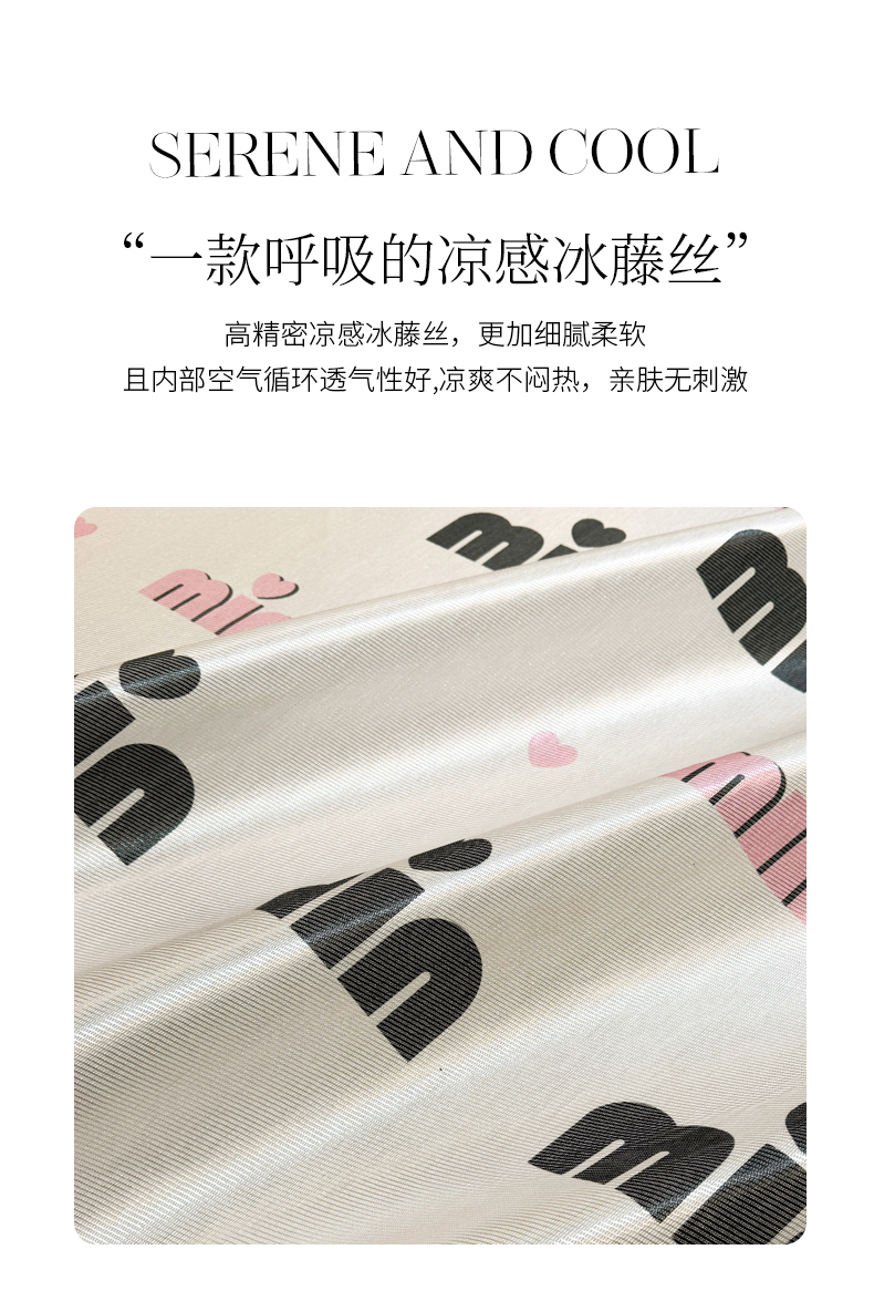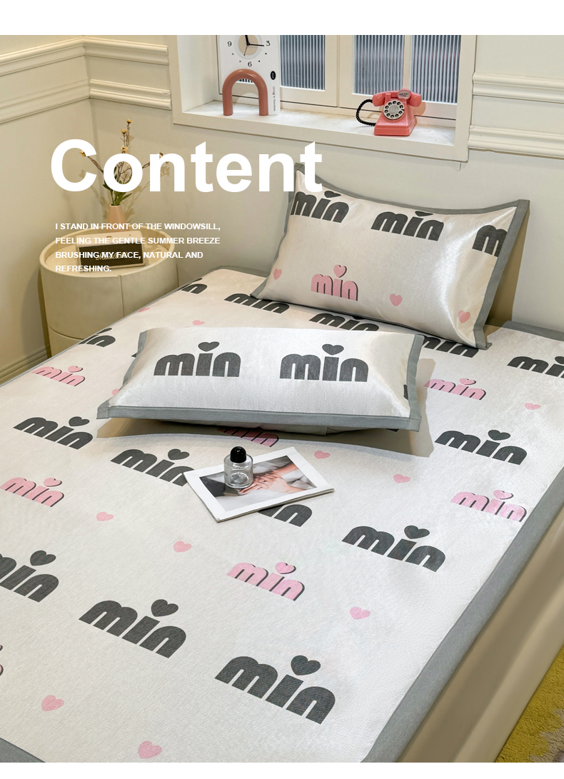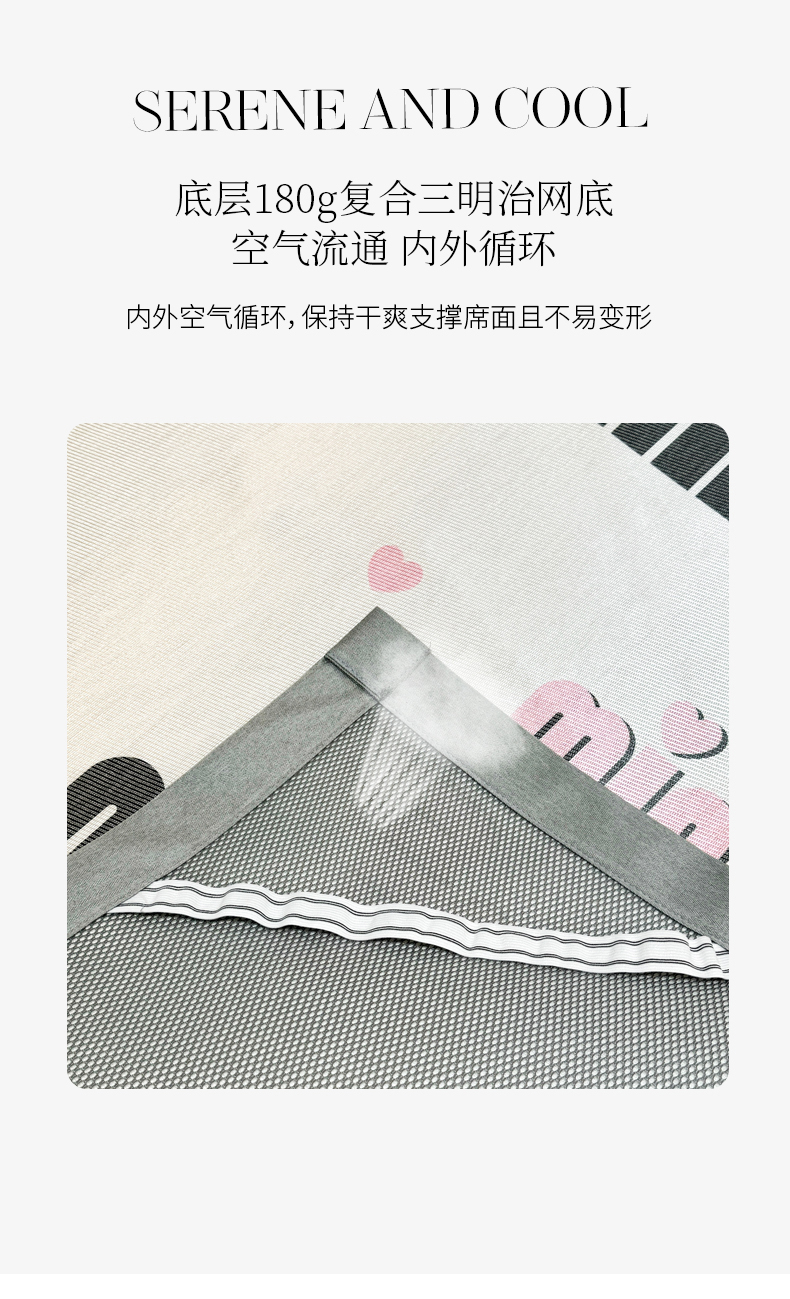 商品名称:LIFE.丽芙 2025春夏季新品数码印花冰藤凉席平铺冰丝凉席印花小清新绑带款三件套(风格一) 甜心粉