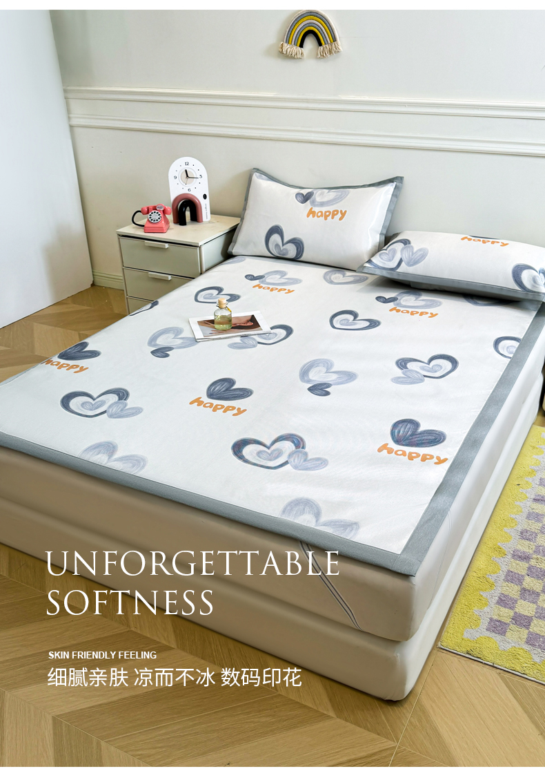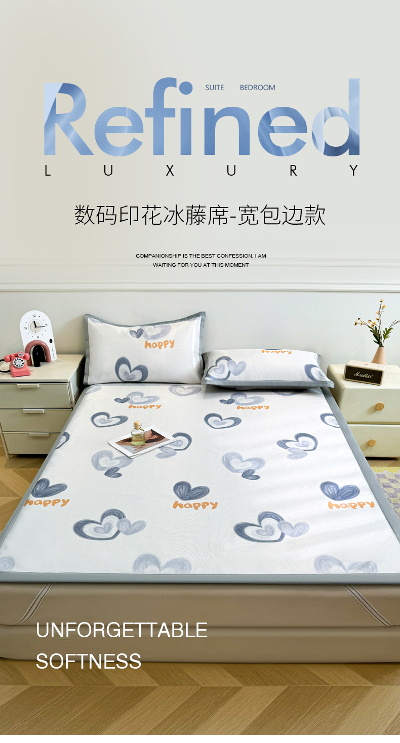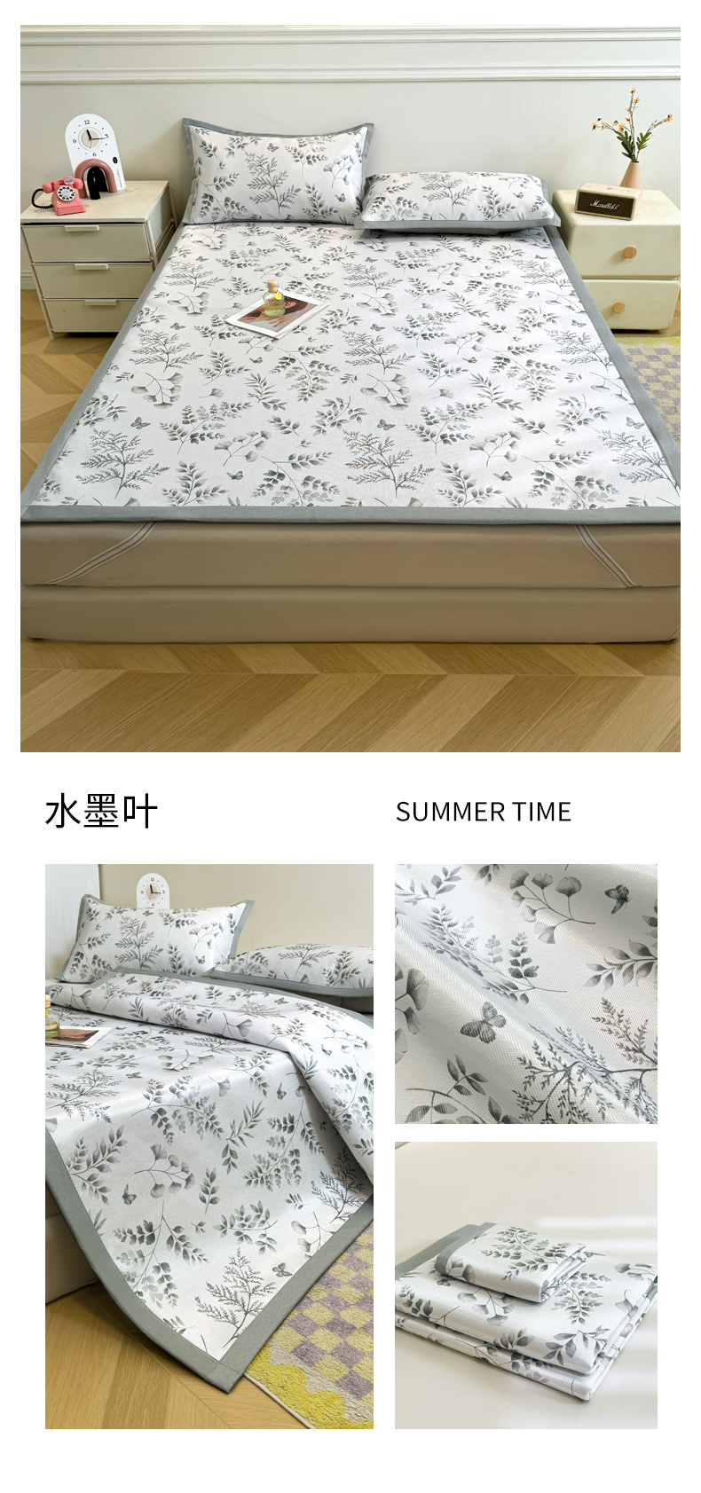 商品名称:LIFE.丽芙 2025春夏季新品数码印花冰藤凉席平铺冰丝凉席印花小清新绑带款三件套(风格二) 邂逅