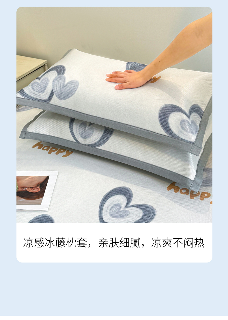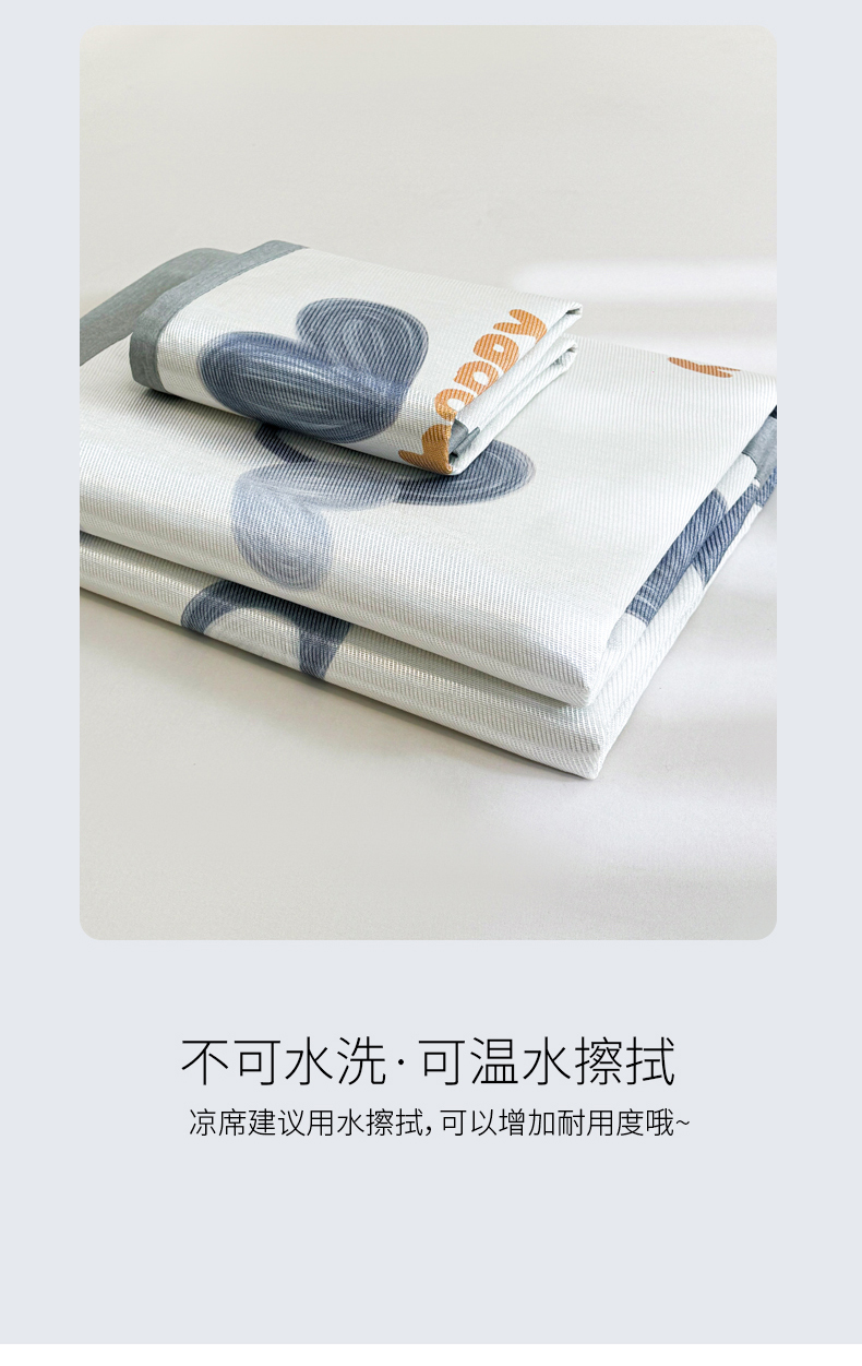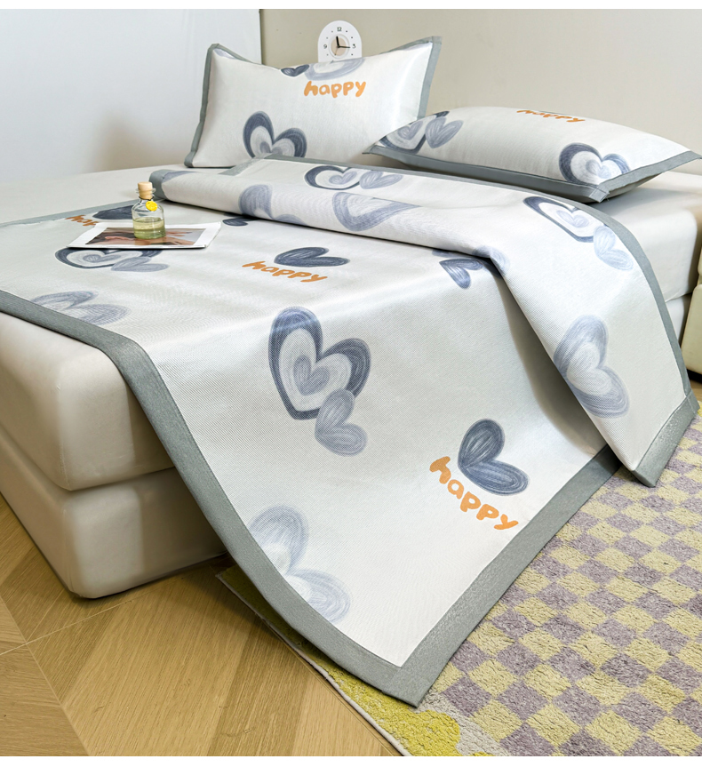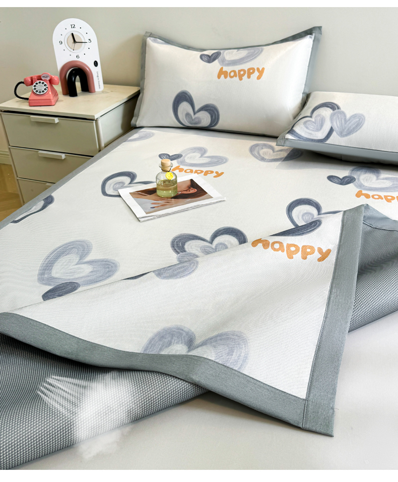 商品名称:LIFE.丽芙 2025春夏季新品数码印花冰藤凉席平铺冰丝凉席印花小清新绑带款三件套(风格二) 邂逅