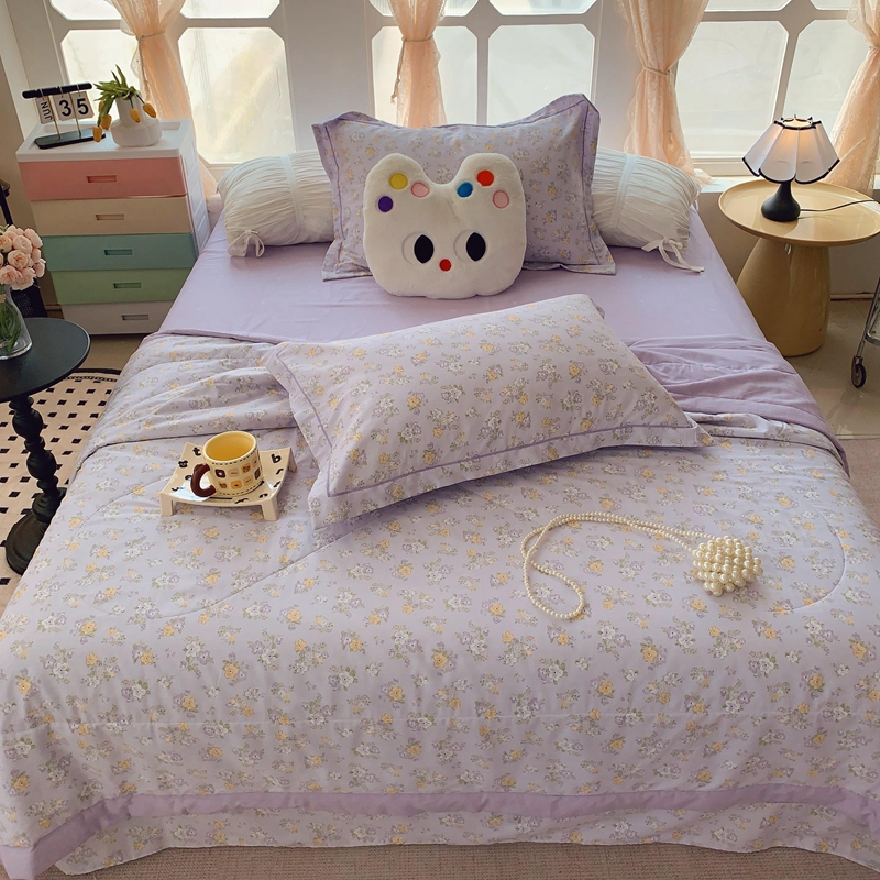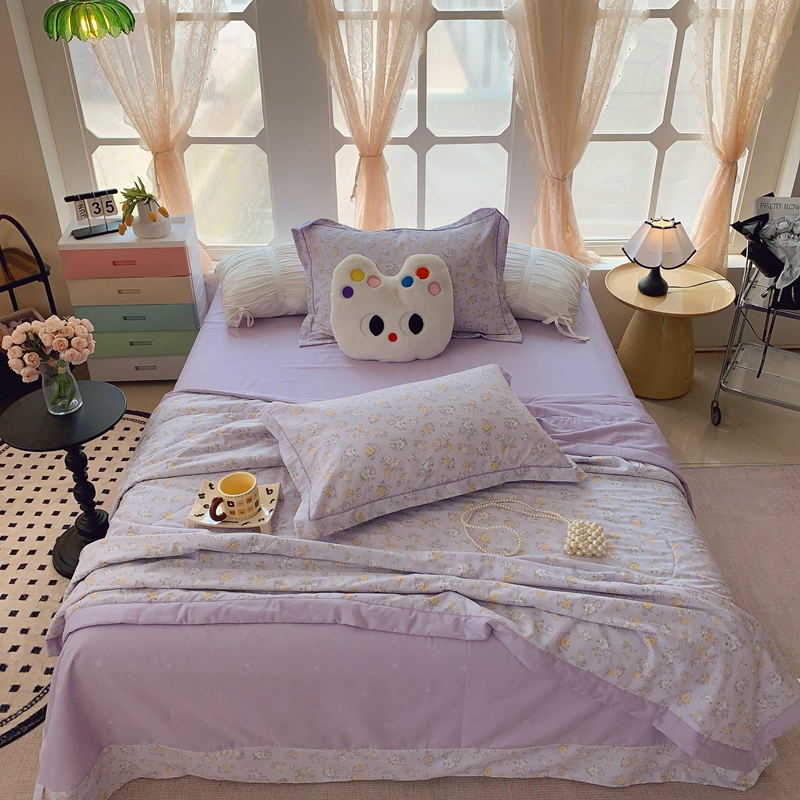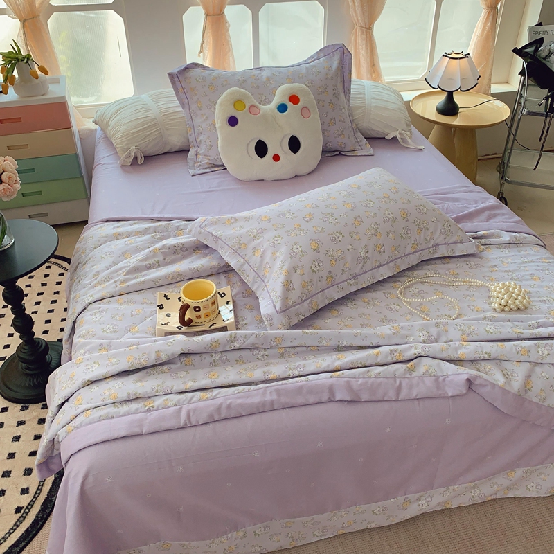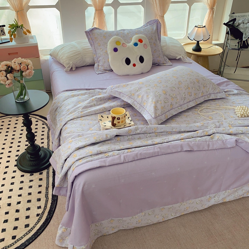 莱豫家纺 2025春夏新款纯棉全棉夏被夏凉被四件套 花语紫