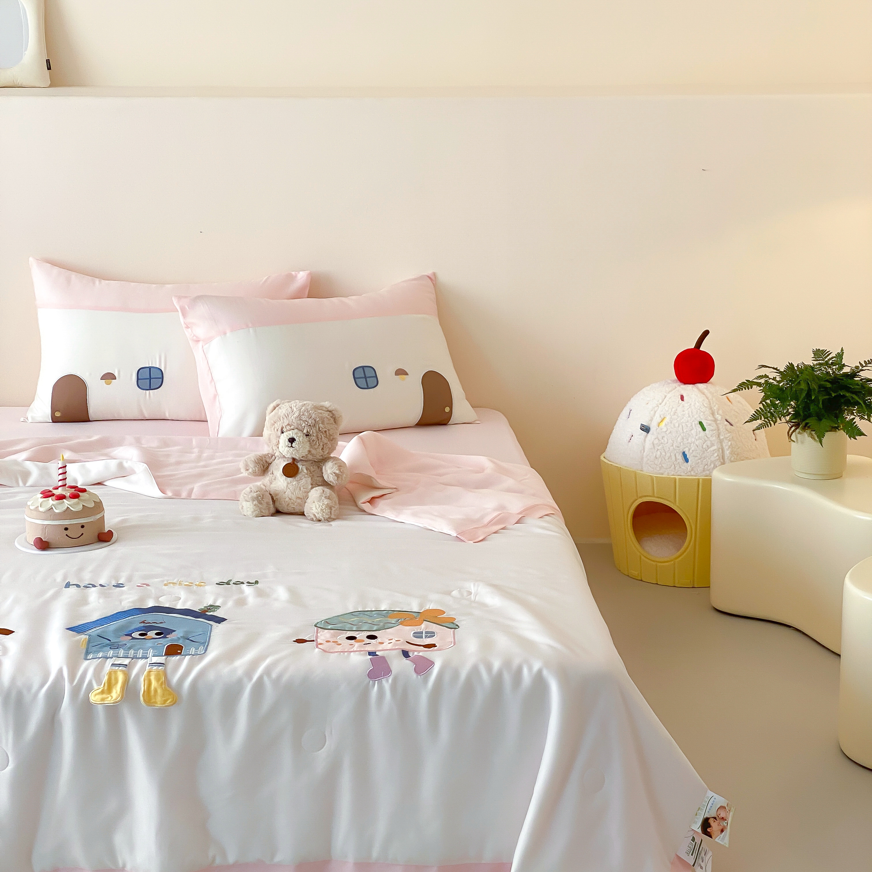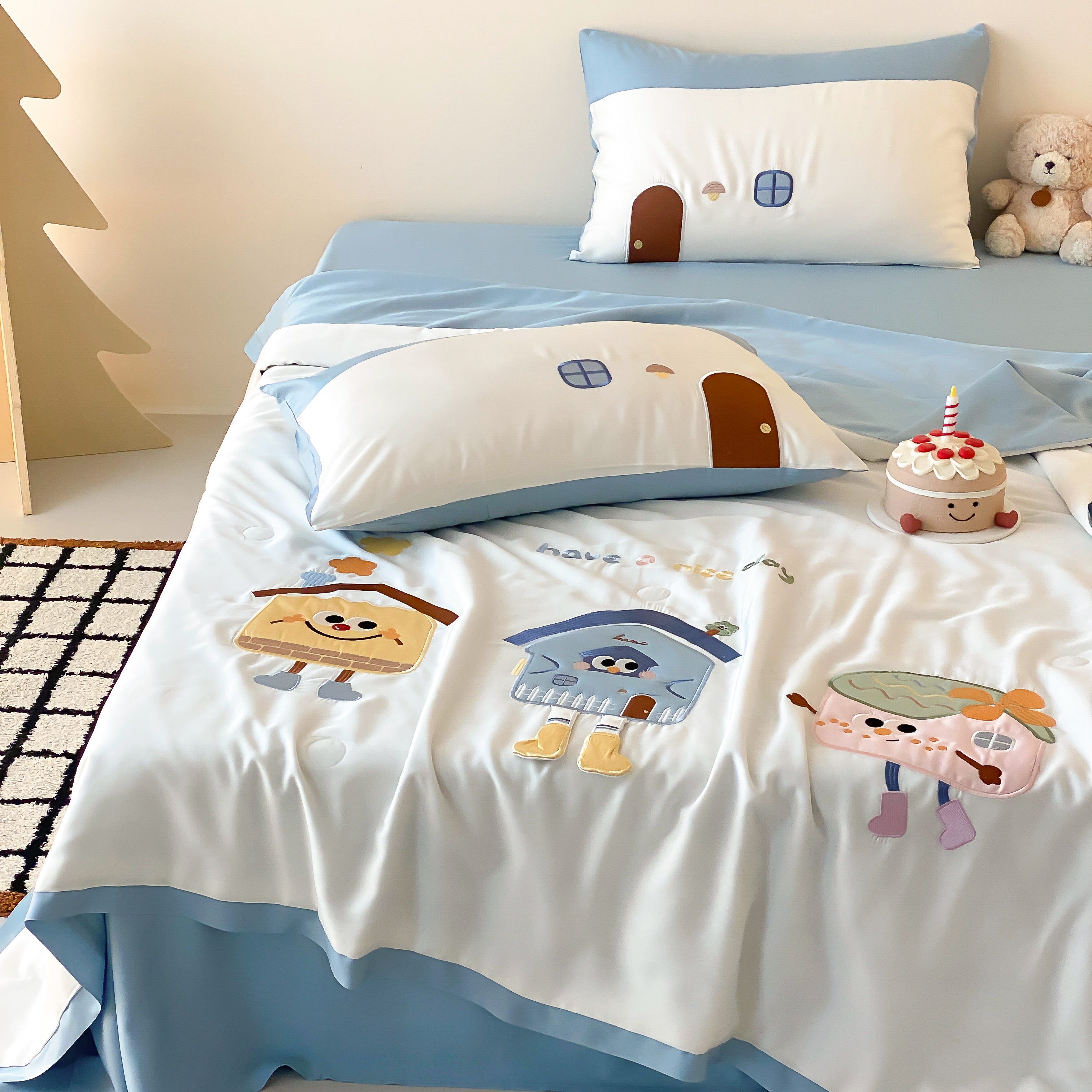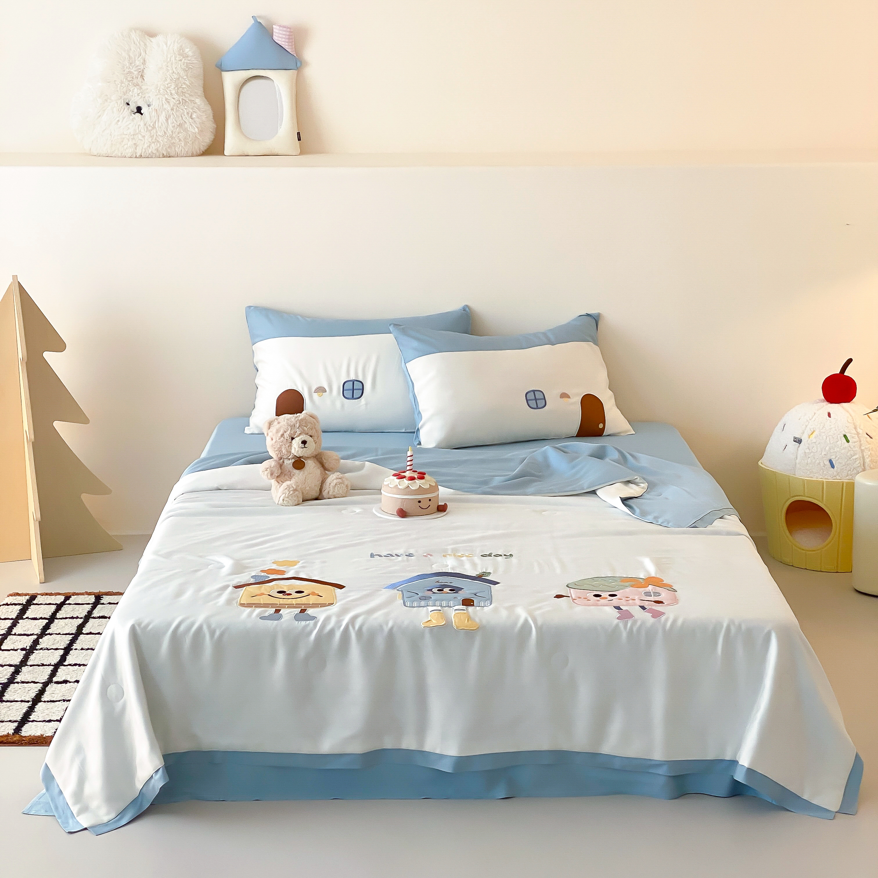(总)星野 2025新款高克重牛奶绒贴布绣四件套-摇摇乐,摇摇乐