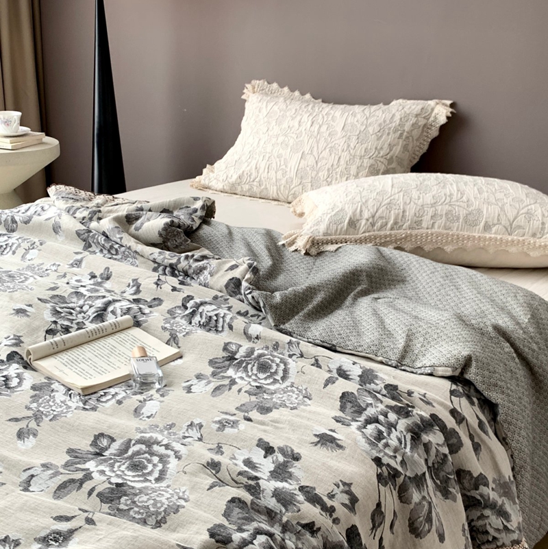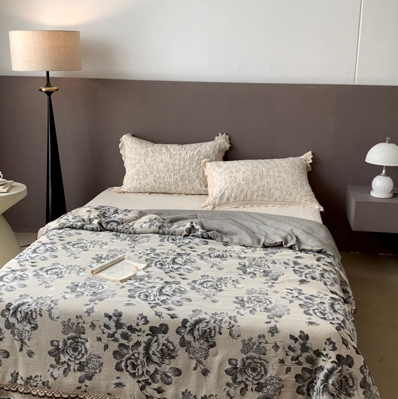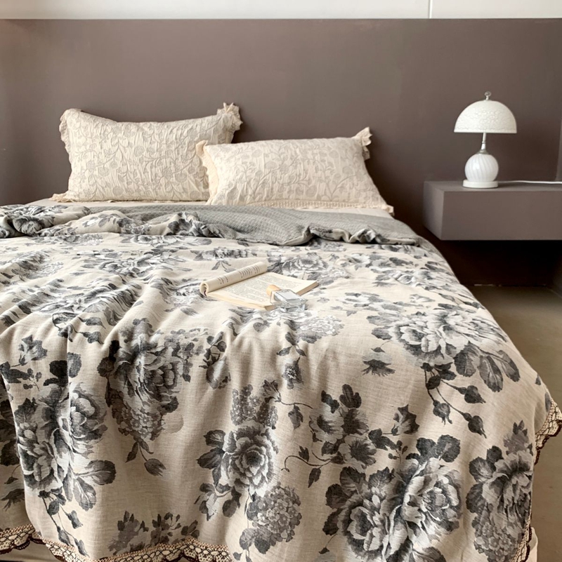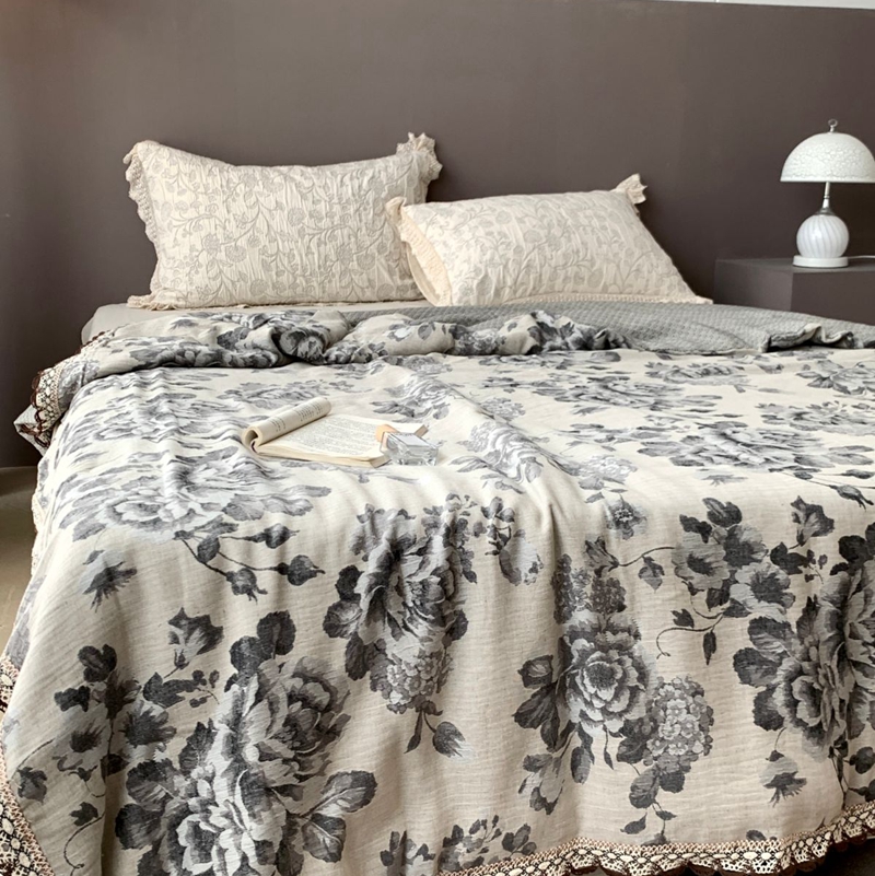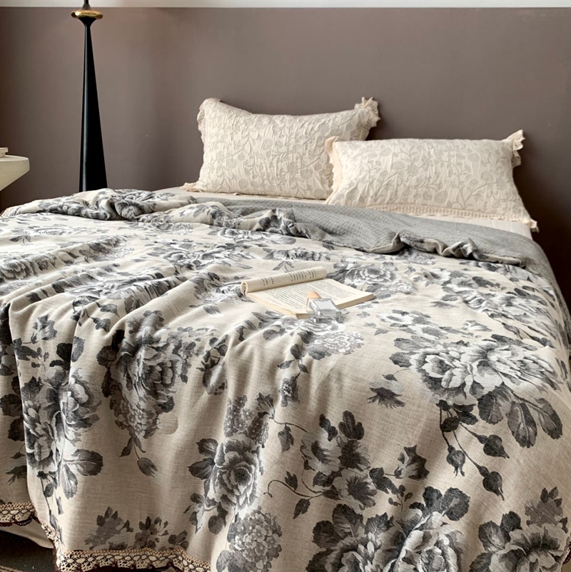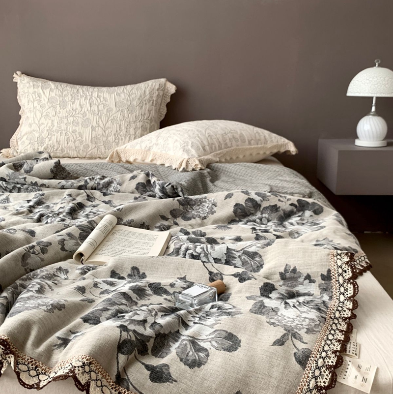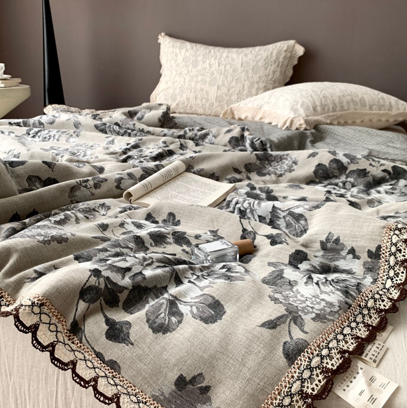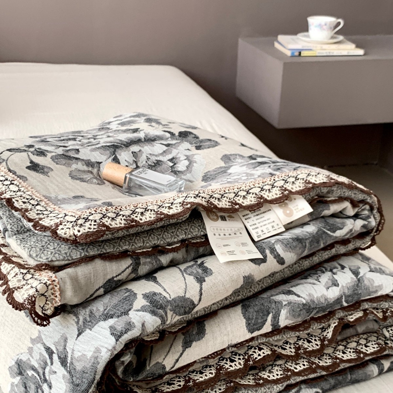 凡客2025新款棉麻色织提花双层纱蚕丝棉夏被(镂空花边款) 迷雾花园