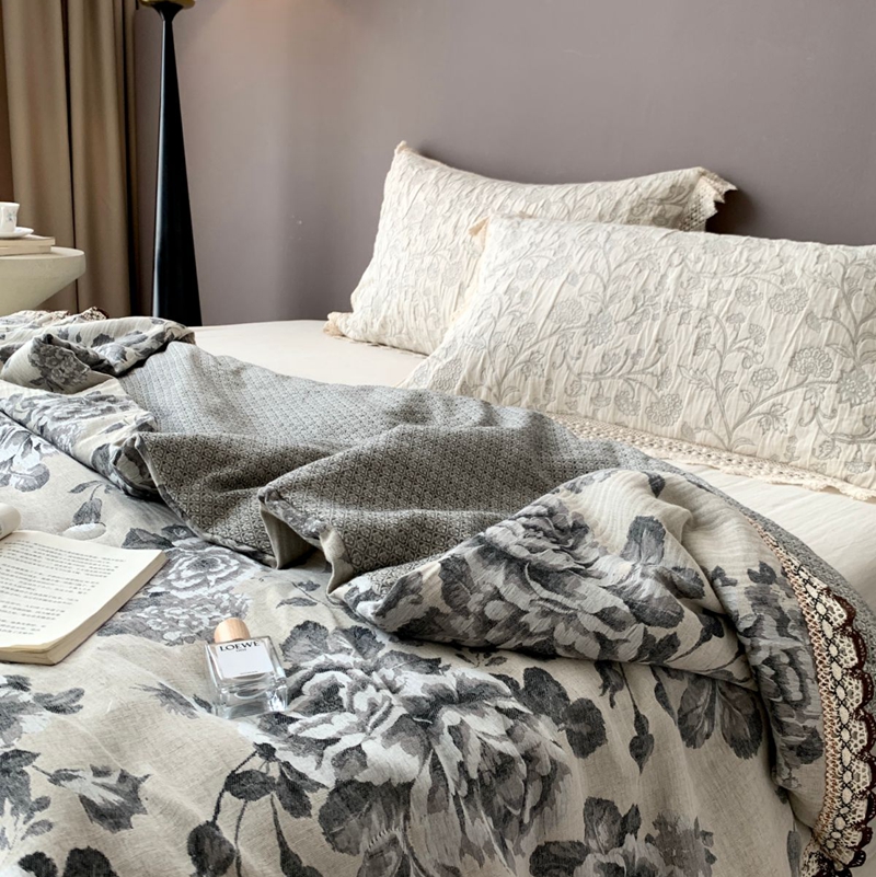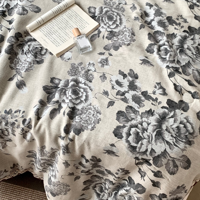 商品名称:凡客2025新款棉麻色织提花双层纱蚕丝棉夏被(镂空花边款) 迷雾花园