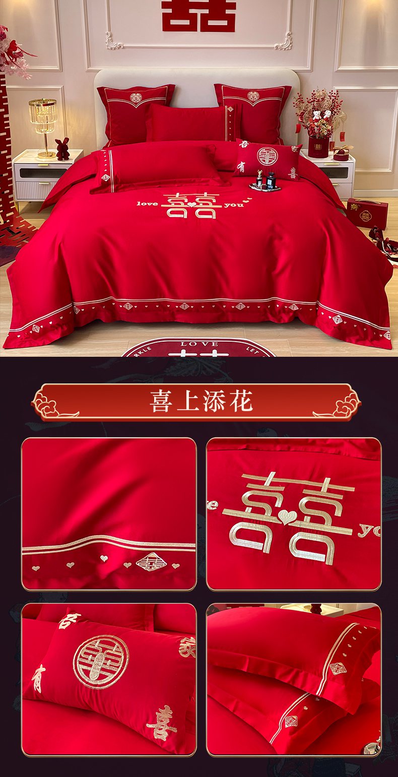 当前位置: 91家纺网 > 商品网购 > 床品套件 > 四件套 > 婚庆四件套 > 洽想家 2025新款全棉新中式刺绣婚庆四件套多件套(控价销售最低不低于288元) 喜愿成真