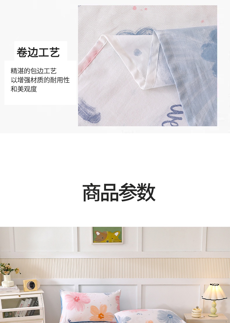 商品名称:宇彬家纺 2025直播新款13070全棉纯棉印花双人单床单枕套三件套喷气小清新简约学生被单 休闲小熊