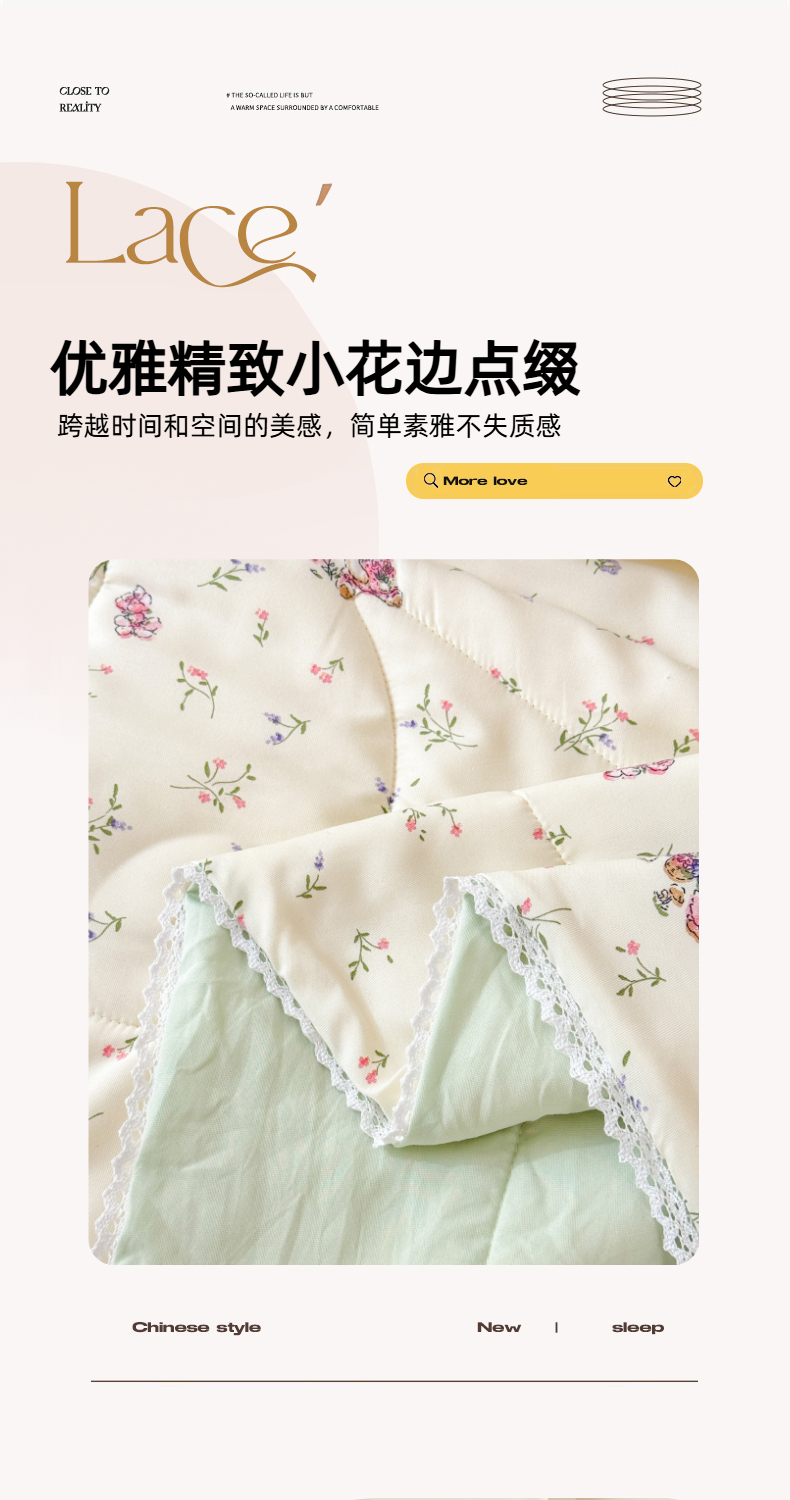 • 91家纺网 家纺一手货源 找家纺 仁凯家纺 2025新款A类针织棉双层纱100%新疆棉花花边夏凉被四件套(包检测)(提供买家秀) 花海