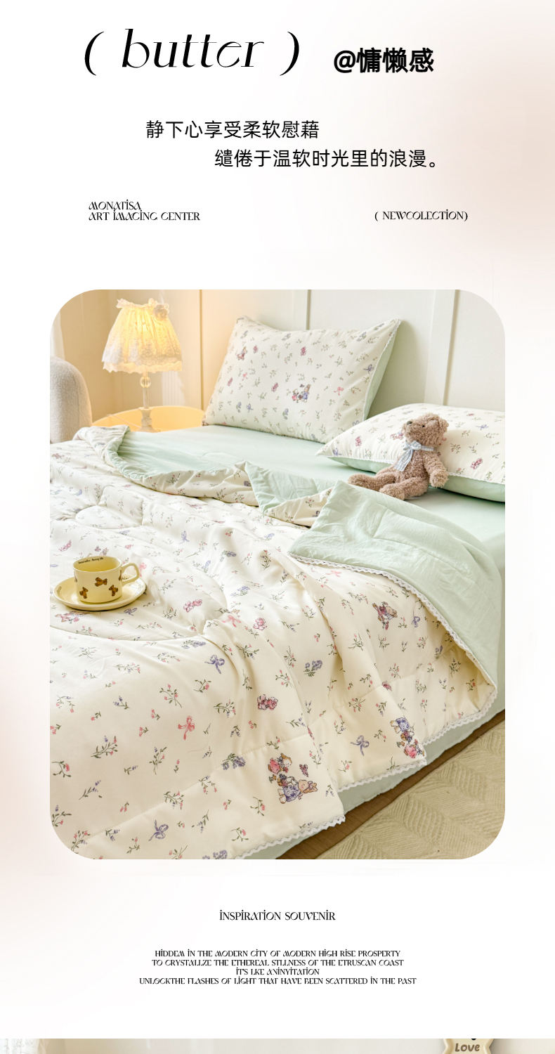 • 91家纺网 家纺一手货源 找家纺 (总)仁凯家纺 2025新款A类针织棉双层纱100%新疆棉花花边夏凉被(包检测)(提供买家秀),格调,花海,咖色蝴蝶结,可爱熊,玫瑰兔,蘑菇森林,倾心南瓜,绅士熊,紫色葡萄