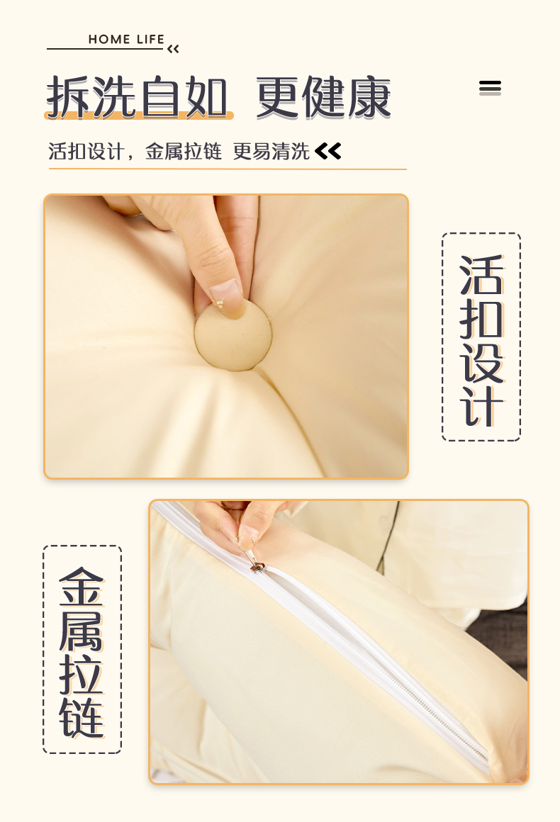 (总)碧尔家居 2025新款简约猫长条机械钉扣水洗棉床头靠枕,米黄,浅蓝,银灰