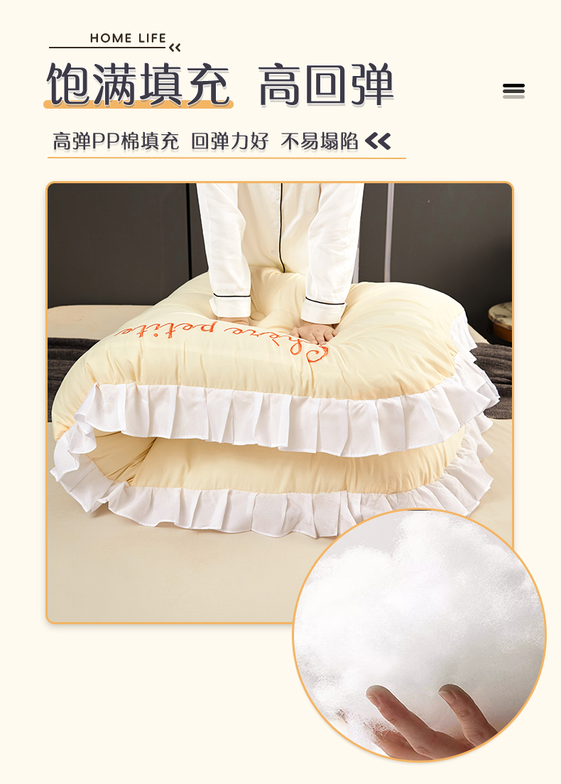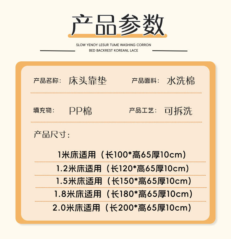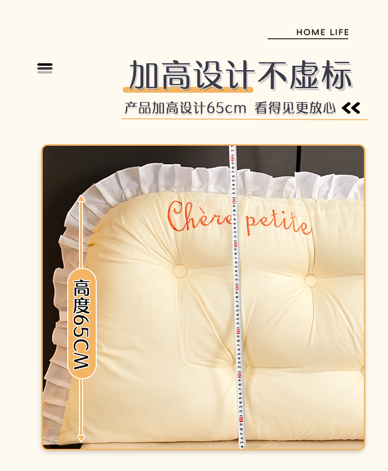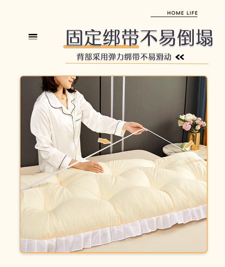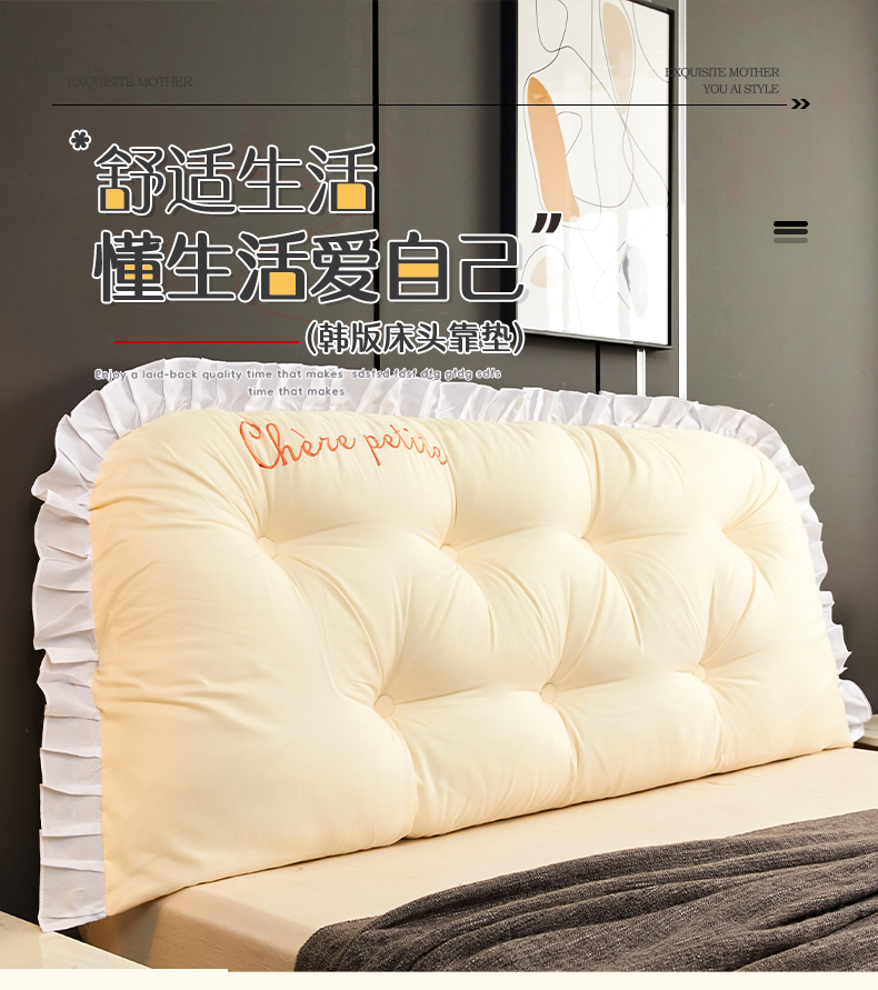 商品名称:碧尔家居2025新款加高宿舍床头靠垫卧室床上靠枕米黄榻榻米软包长条靠背绑带拆洗-韩版 米黄